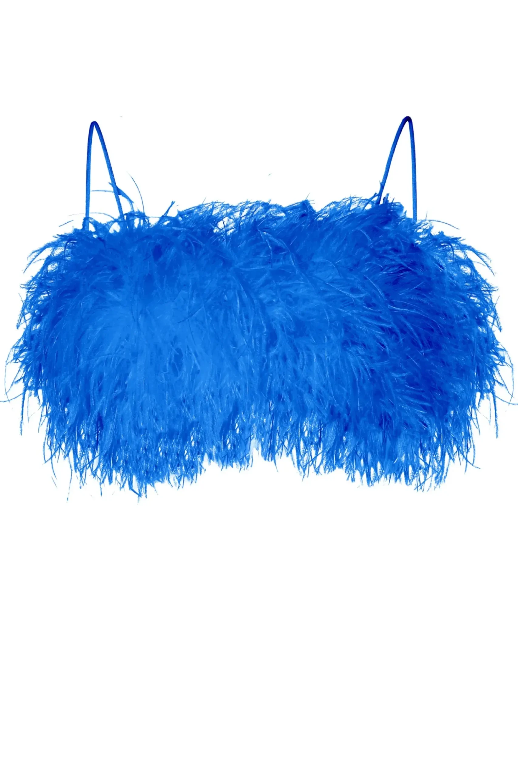 Zmyslowy Wieczorowy Top Uszyty Ze Strusich Pior Na Subtelnych Ramiaczkach Typu Makaroniki.