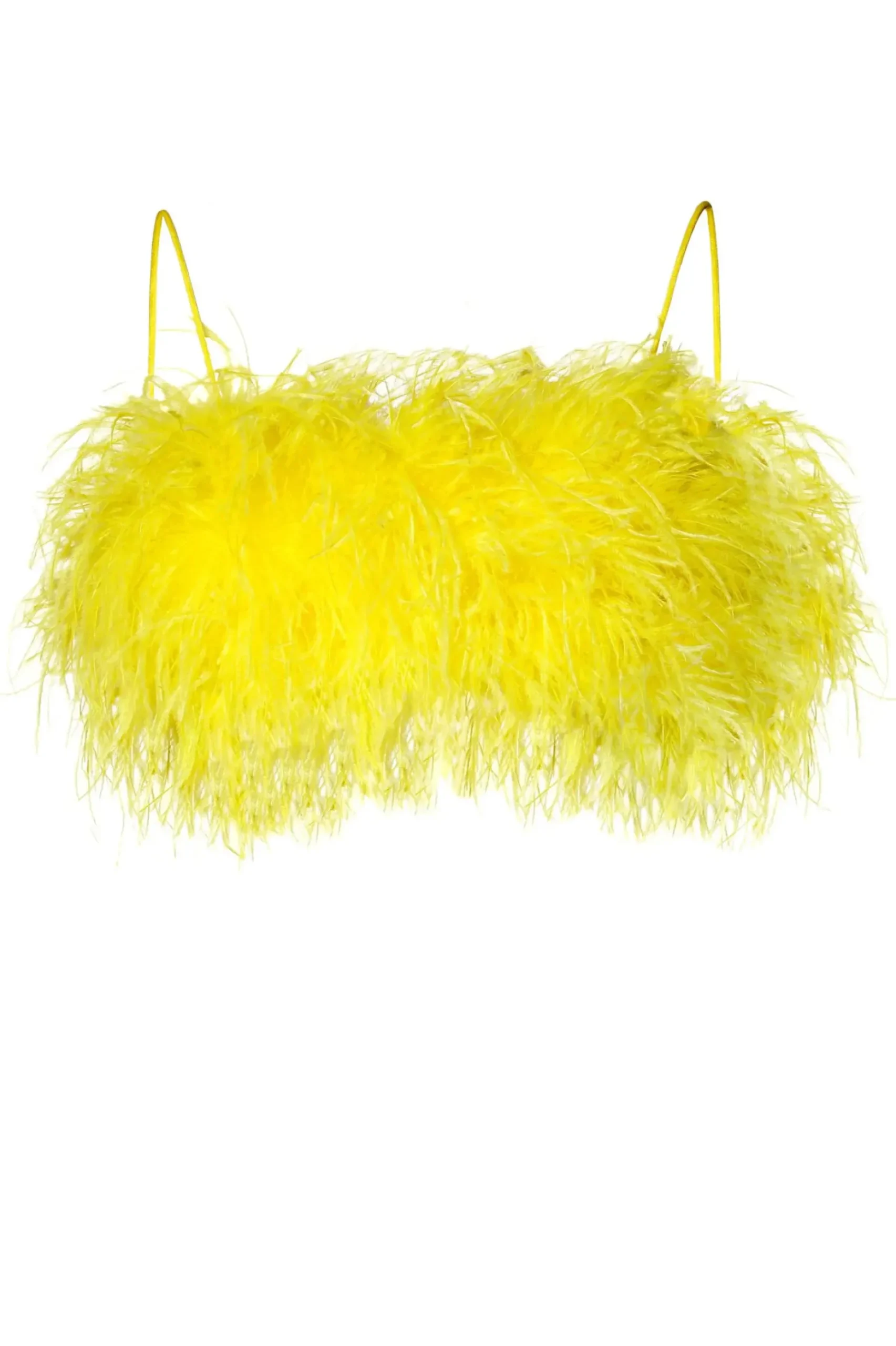 Zmyslowy Wieczorowy Top Uszyty Ze Strusich Pior Na Subtelnych Ramiaczkach Typu Makaroniki.