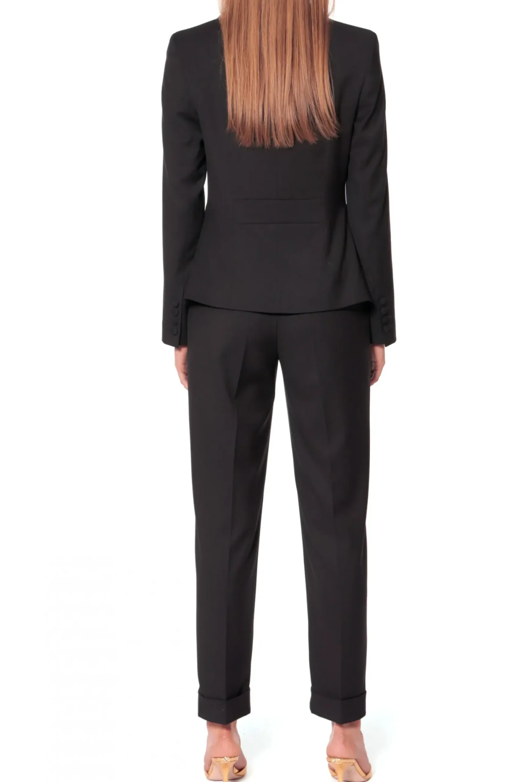 Kobieca Marynarka O Wysmuklajacym, Modelujacym Kroju Zapinana Na Guzik Obleczony Tkanina. Dolne Poly Marynarki O Geometrycznym Kroju Z Wysoko Umieszczonymi Przednimi Kieszeniami Podkreslaja Talie. Skompletuj Ja Ze Spodniami Kelly Rich Black.