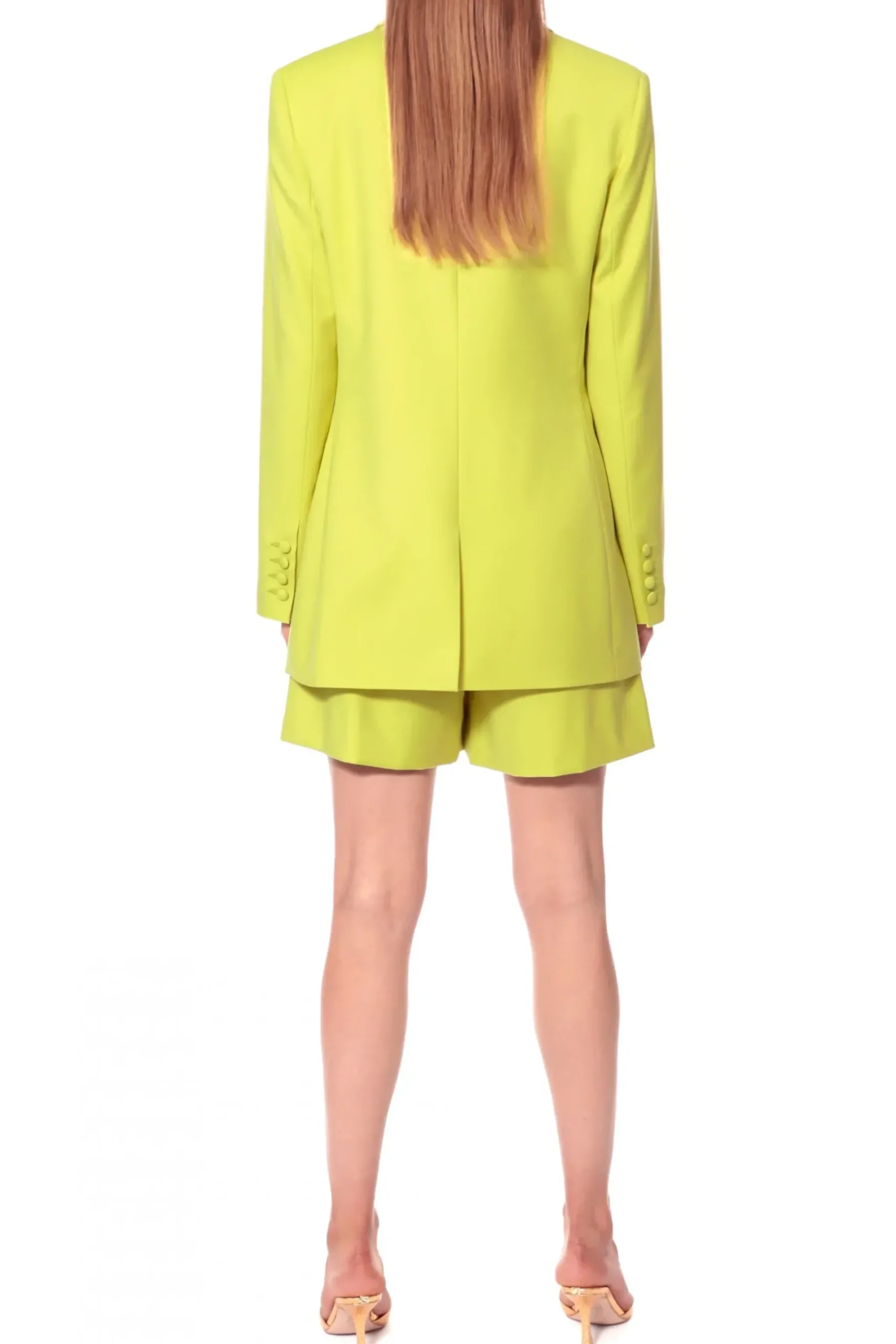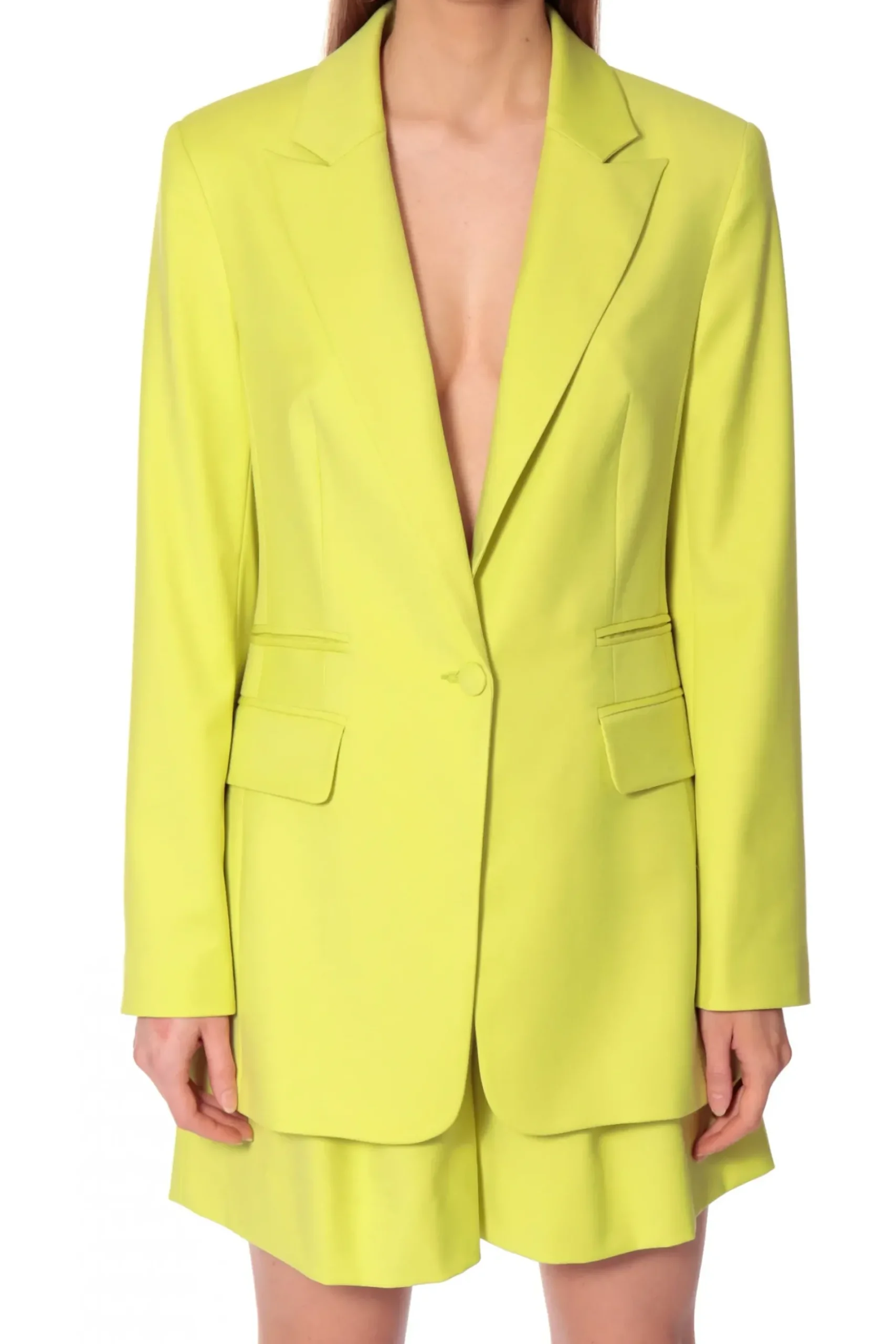 Dluga Jednorzedowa Marynarka Z Klasycznym Kolnierzem I Dlugim Dekoltem. Delikatna Linia Ramion Oraz Lekko Podkreslona Talia Dodaja Kobiecosci I Elegancji. Nos Ja Z Szortami Lucy Wild Lime.
