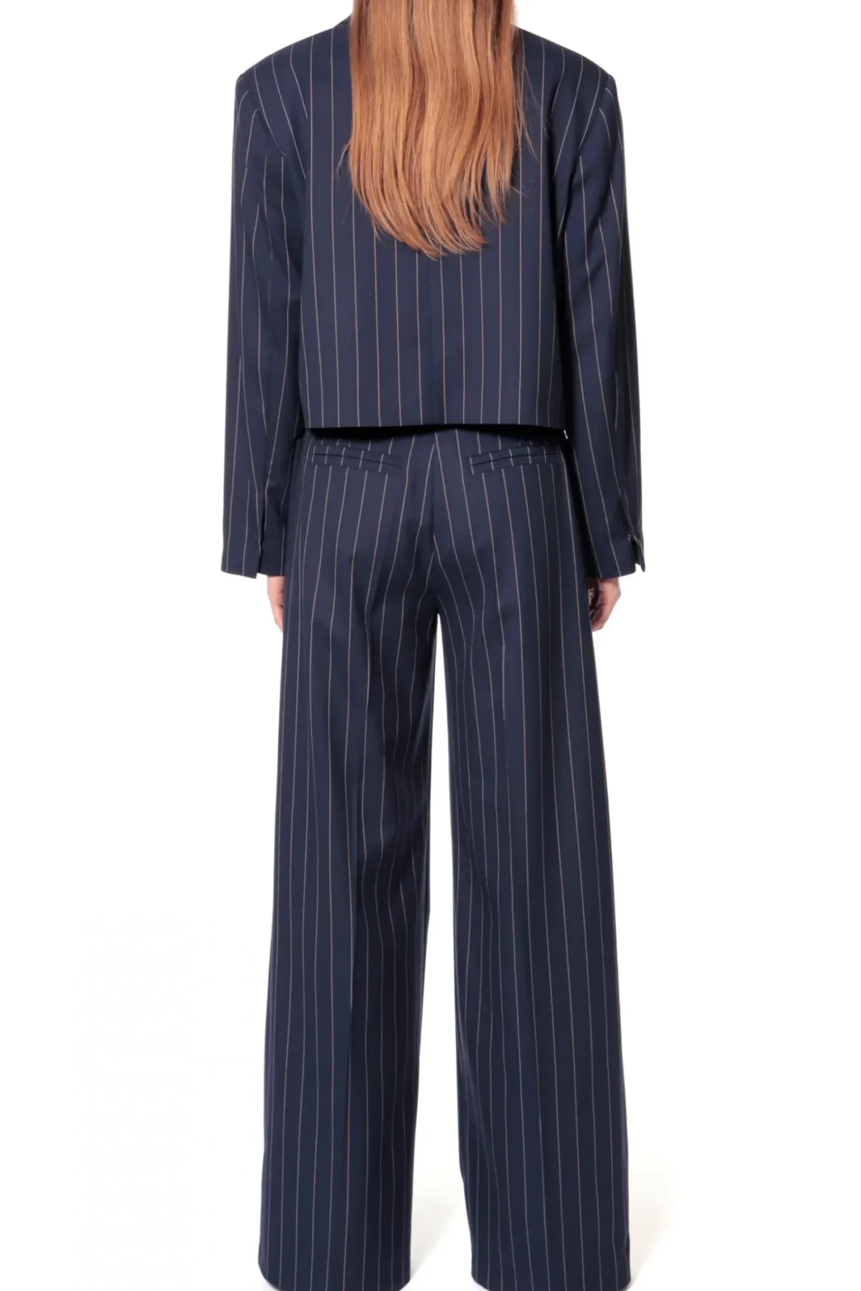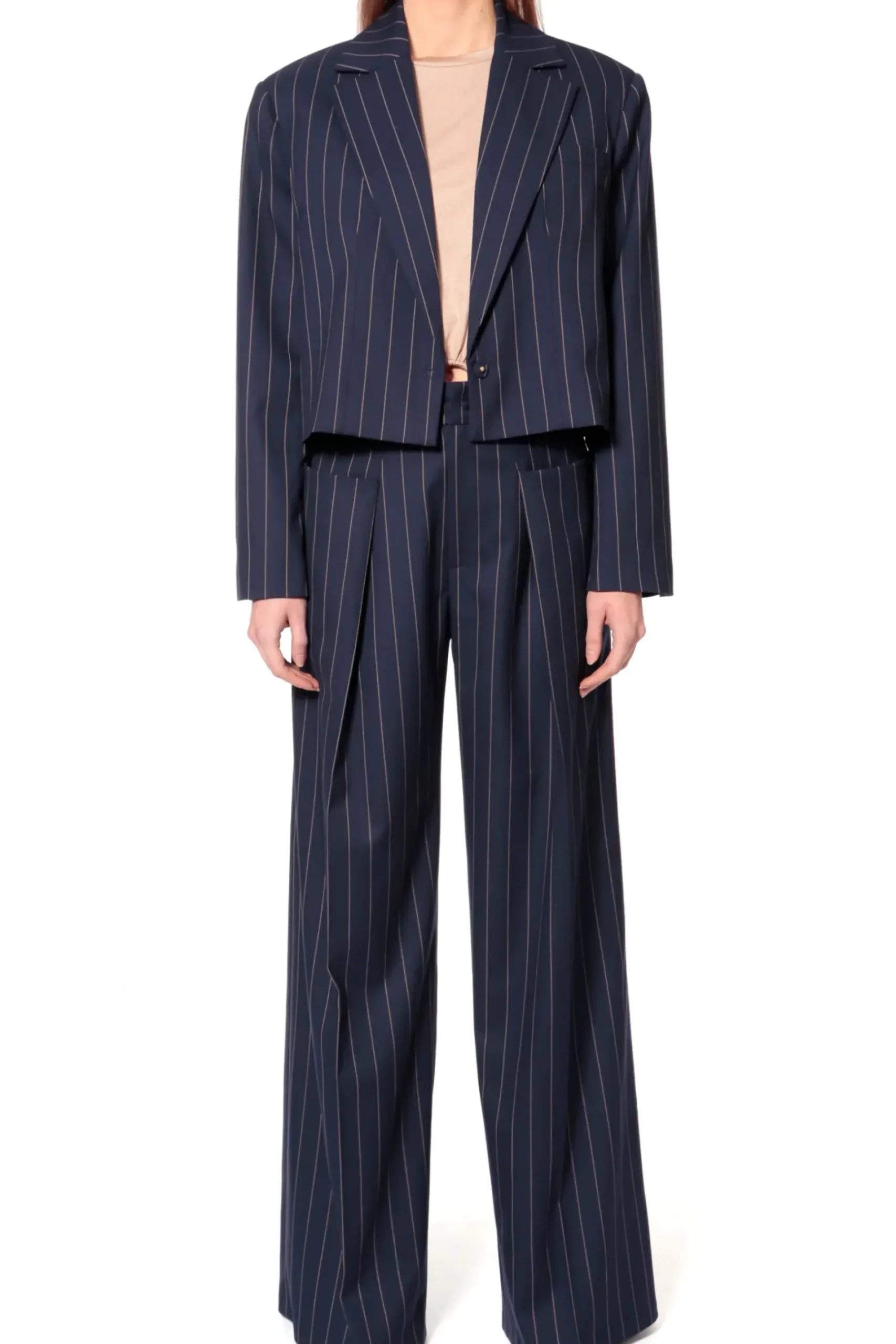 Krotka Jednorzedowa Marynarka W Tenisowy Prazek Z Mocno Zaznaczona, Nieco Przerysowana Linia Ramion. Projekt Stanowi Jeden Z Elementow Garnituru – Skomponuj Go Ze Spodniami Stacey Mood Indigo.