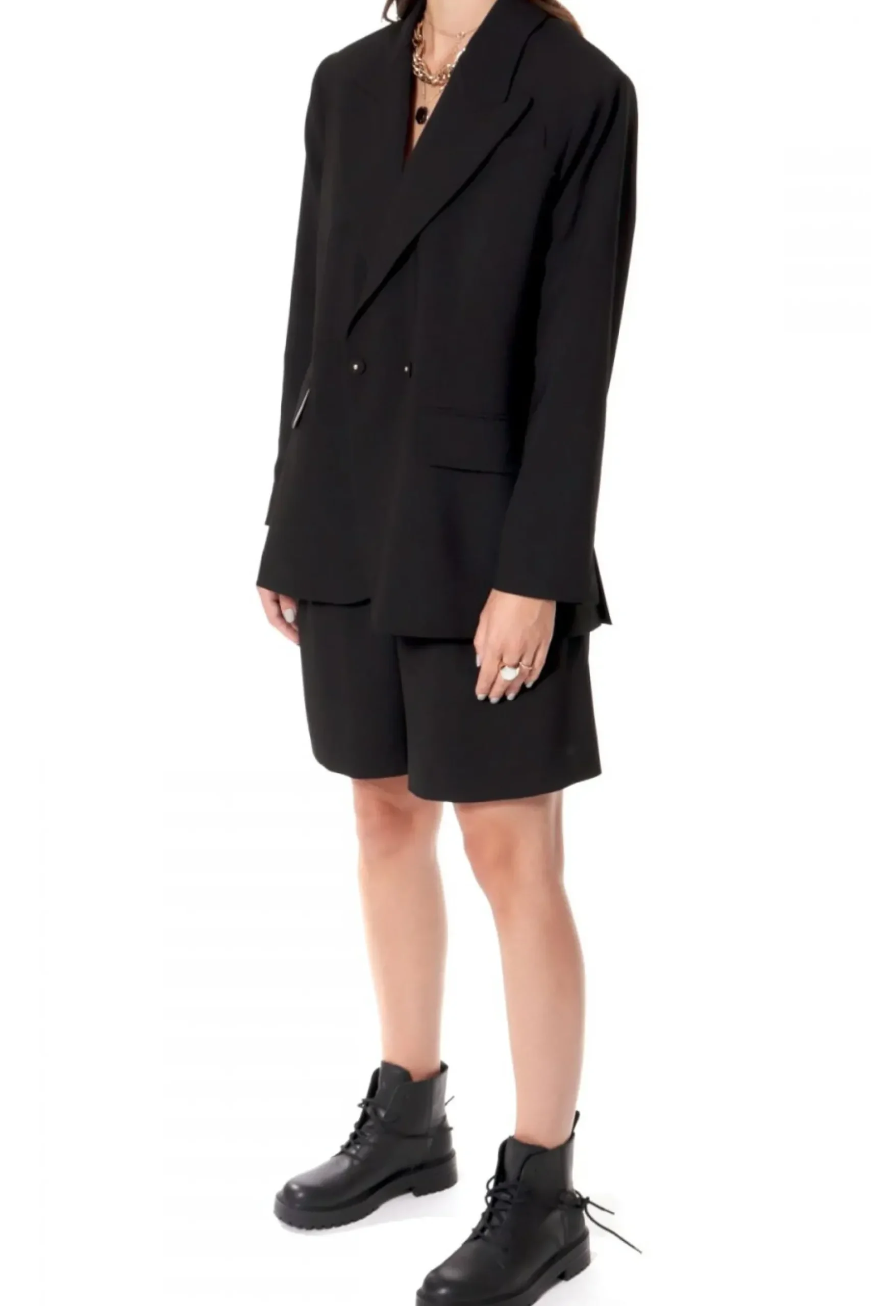 Marynarka O Oversizowym Kroju Inspirowana Marynarka Z Meskiego Garnituru.Szerokie Klapy, Mocno Zarysowane Ramiona Wystajace Poza Linie Sylwetki, Rozciecia Z Tylu Marynarki.