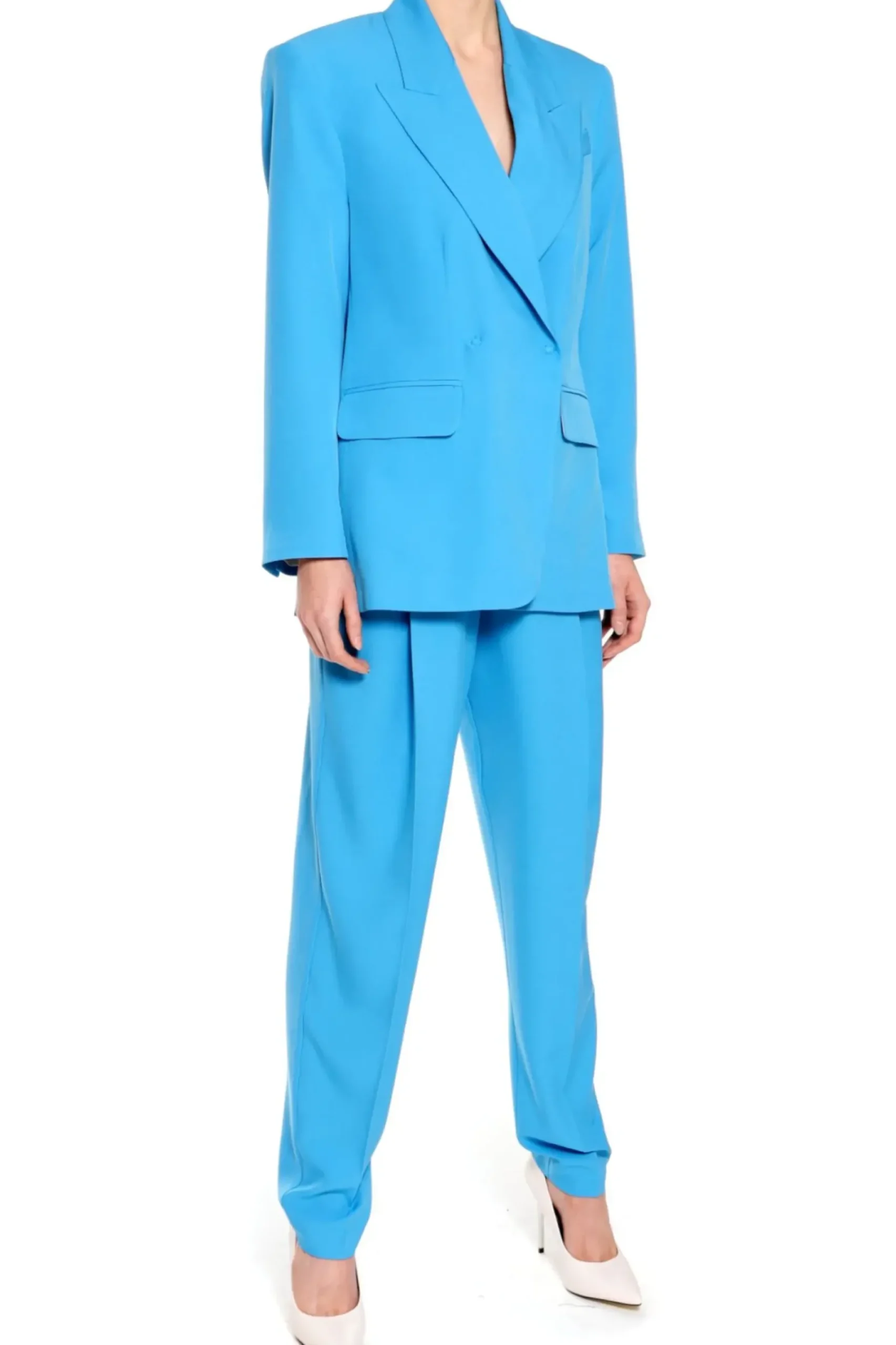 Garniturowe Spodnie Z Kantka Typu Baggy W Intensywny, Energetycznym Kolorze. Wysoka, Mocno Zaakcentowana Talia Z Zakladkami Pozostajaca W Kontrascie Z Luznymi Nogawkami. Glebokie Zakladki Dodaja Objetosci W Gornej Czesci Nogawek Aby Potem Zwezic Sie Ku Dolowi I Wysmuklic Sylwetke. Spodnie Posiadaja Kieszenie Boczne Oraz Dwie Wykonczone Listewkami Z Tylu. Nos Je Do Szpilek, Botkow Na Obcasie Lub Na Sportowo Do Kolorowych Sneakersow.