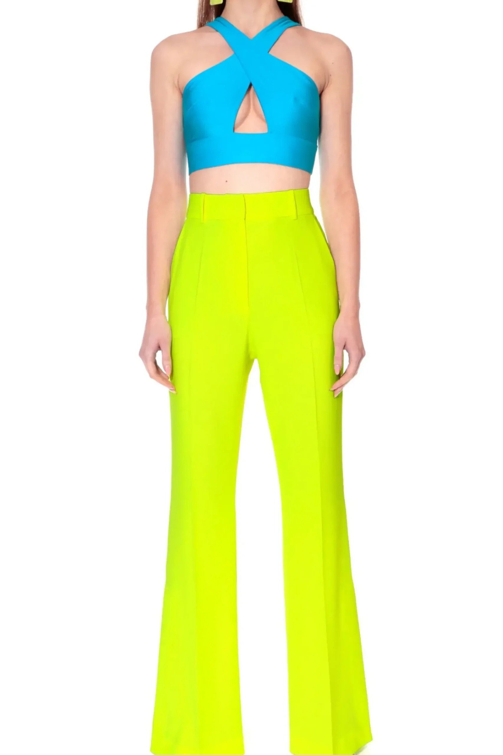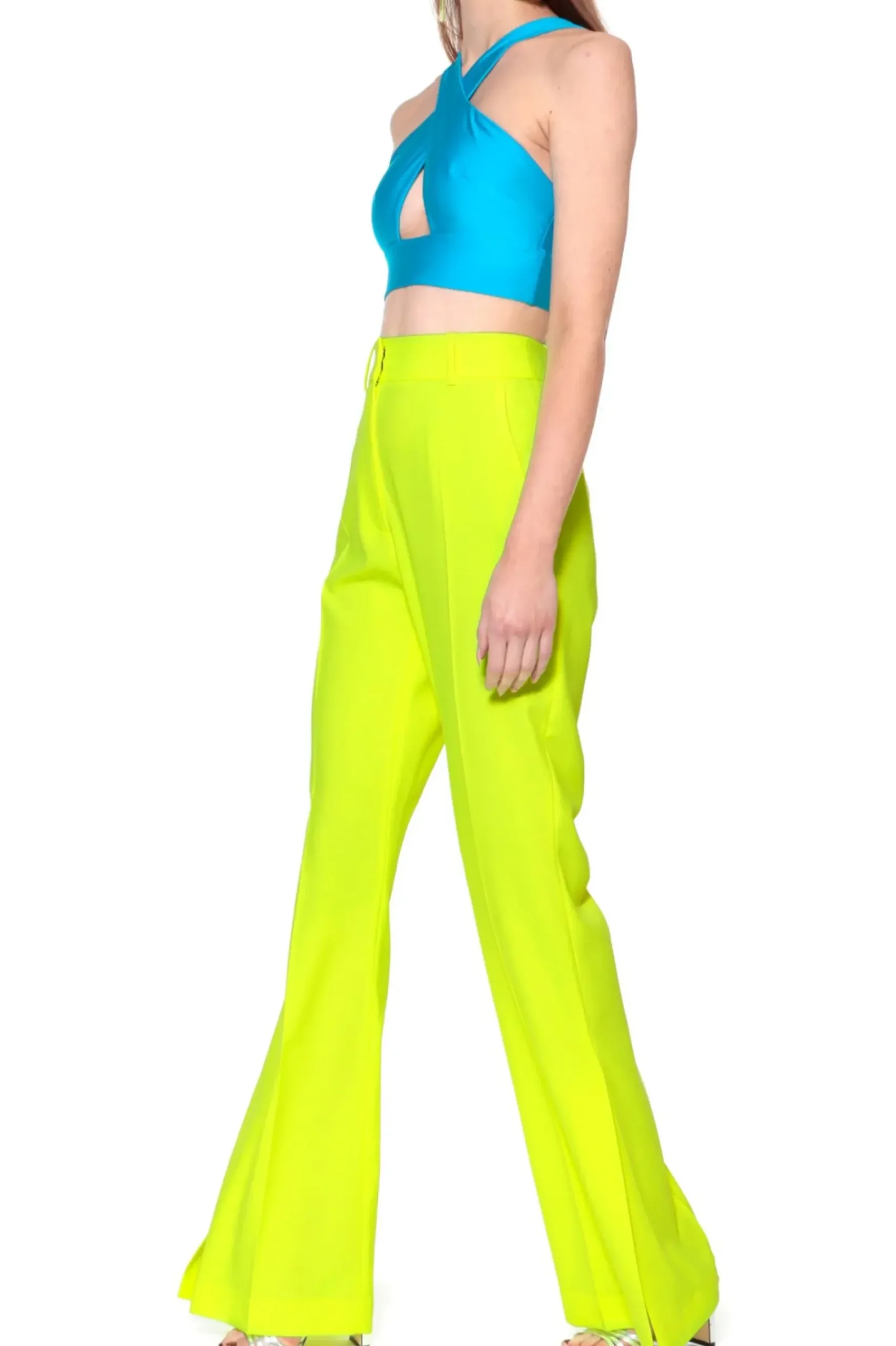 Neonowo Zolte Spodnie Dzwony Z Rozcieciami Na Zewnetrznej Stronie Nogawek.