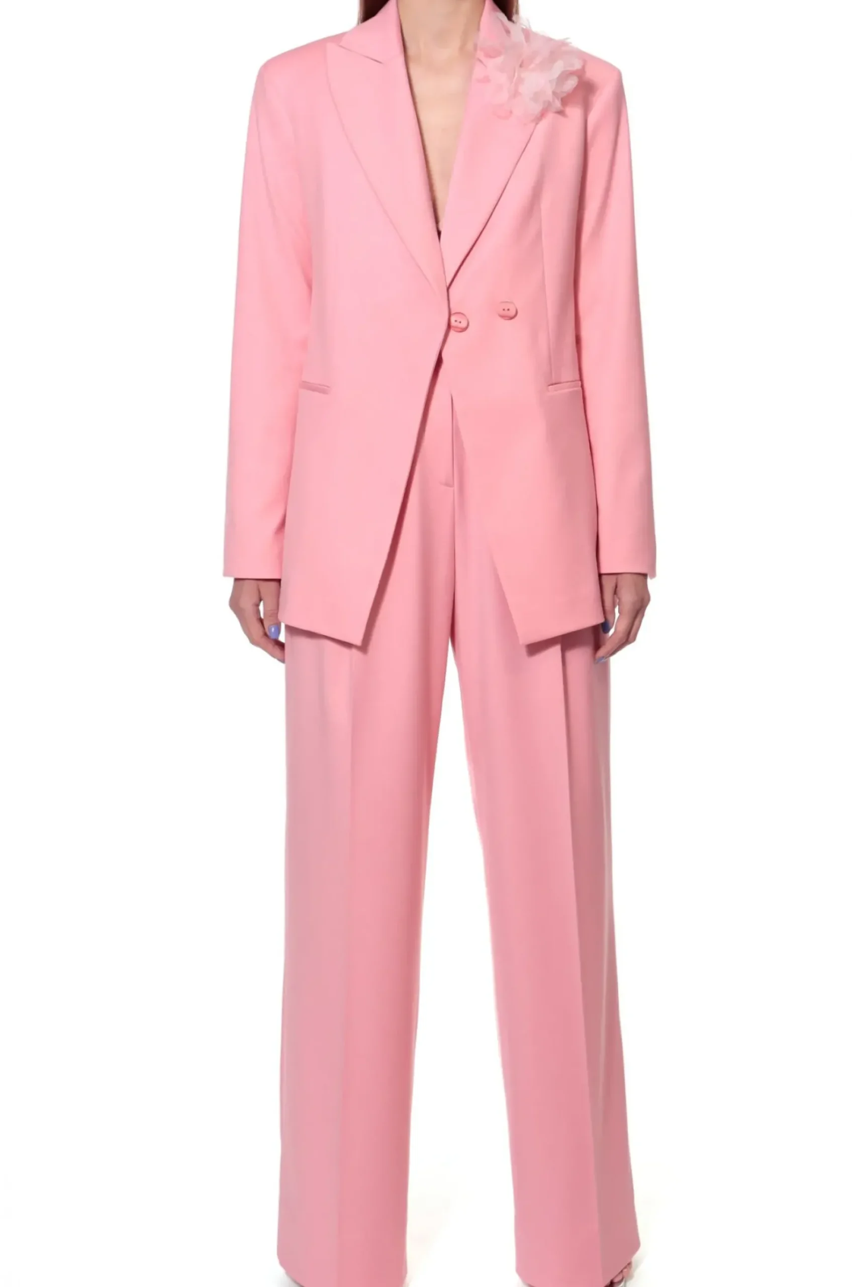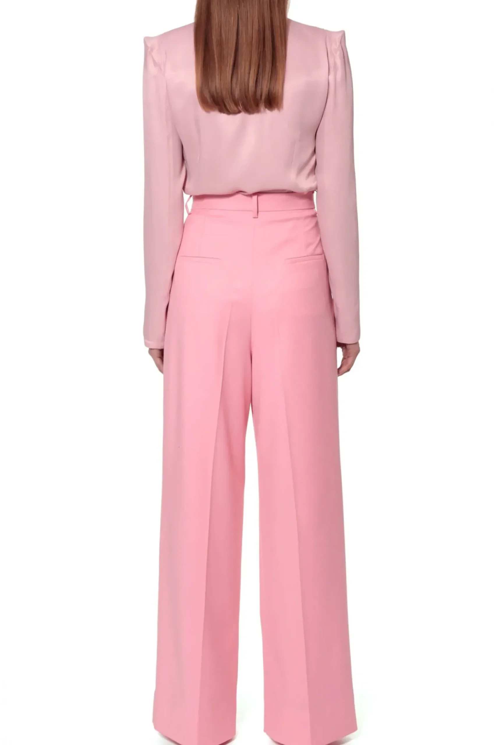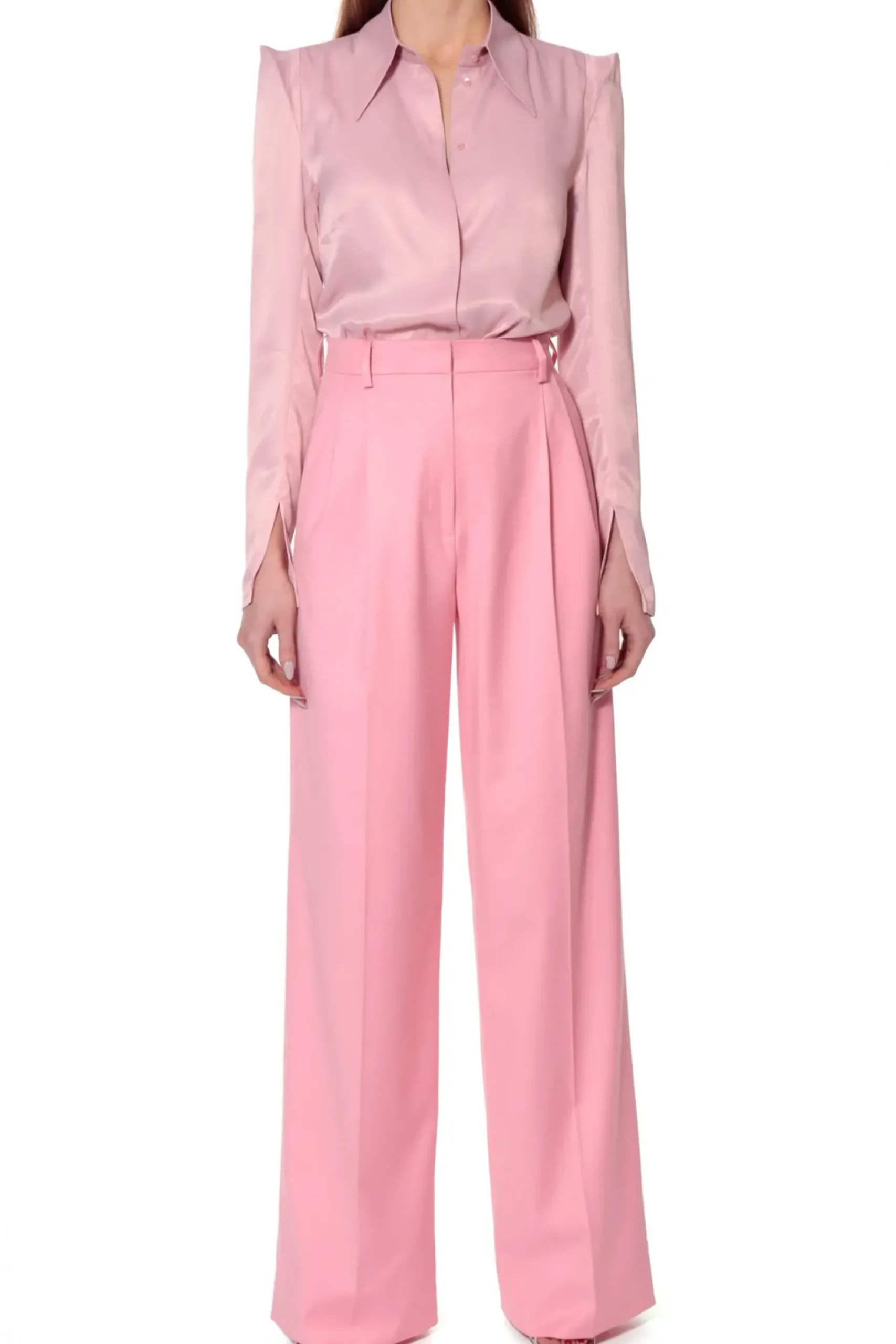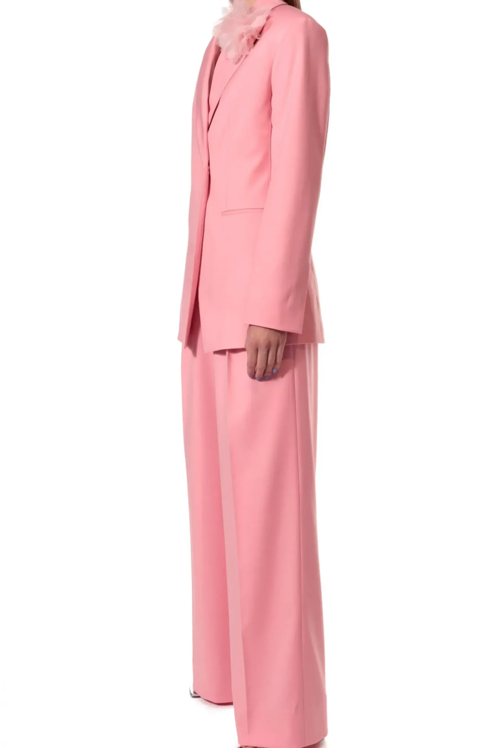 Szerokie Spodnie W Interesujacym Odcieniu Rozu. Wysoka Dopasowana Talia Z Zakladkami Pozostajaca W Kontrascie Z Szerokimi Nogawkami. W Szwach Bocznych Ukryte Kieszenie. Skomponuj Je Z Marynarka Charlie Peony Tworzac Kobiecy Elegancki Total Look Lub Nos Je Nonszalancko Z Tshirtem I Sportowym Obuwiem Na Co Dzien.