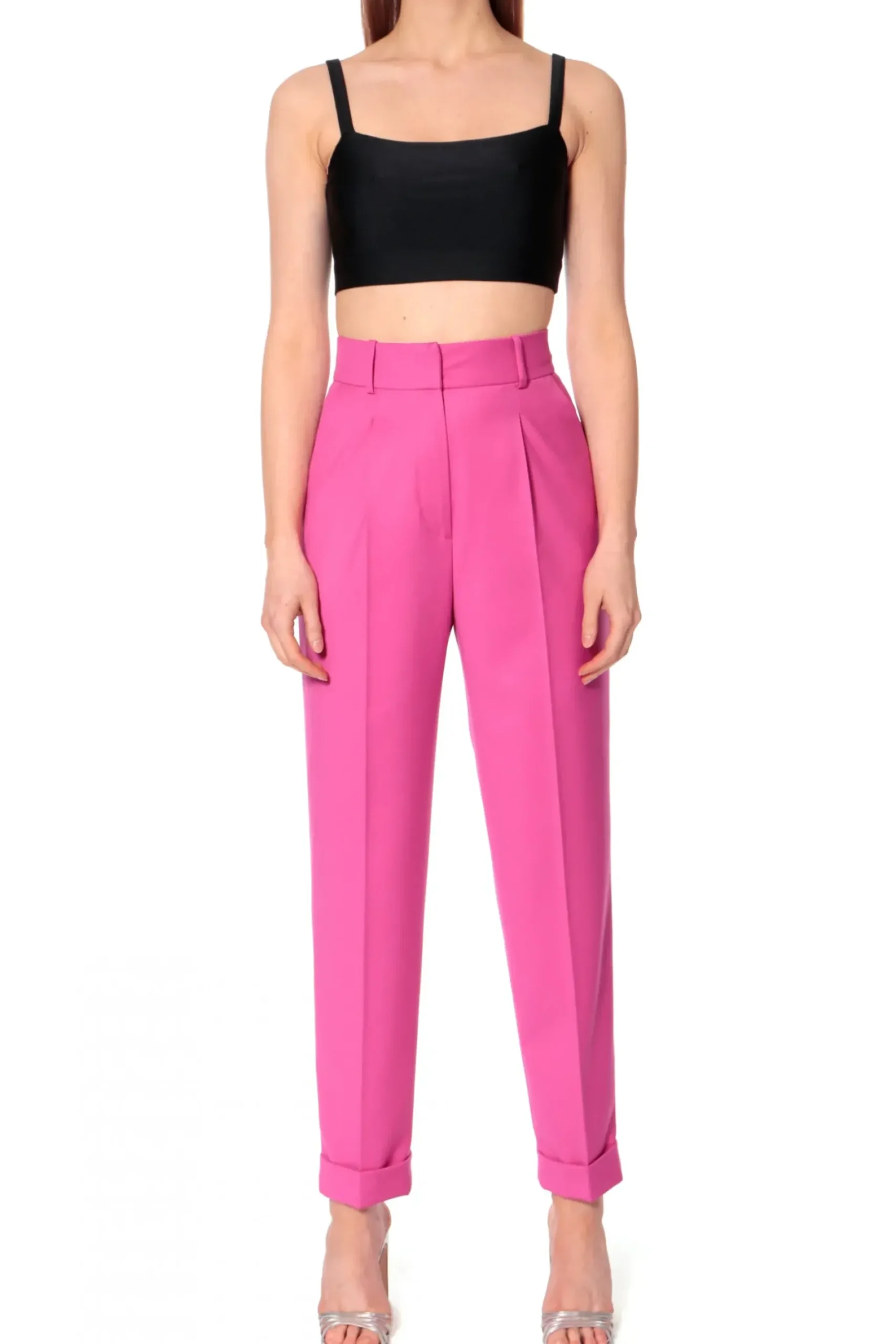 Garniturowe Spodnie Z Wysokim Stanem. Boczne Kieszenie, Szlufki W Pasie, Nogawki Zwezajace Sie Ku Dolowi Zaakcentowane Kantka Zakonczone Mankietem. Polacz Z Marynarka Angela Very Berry.