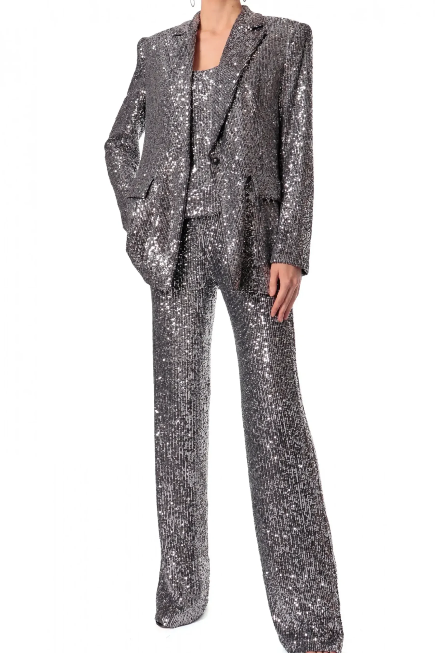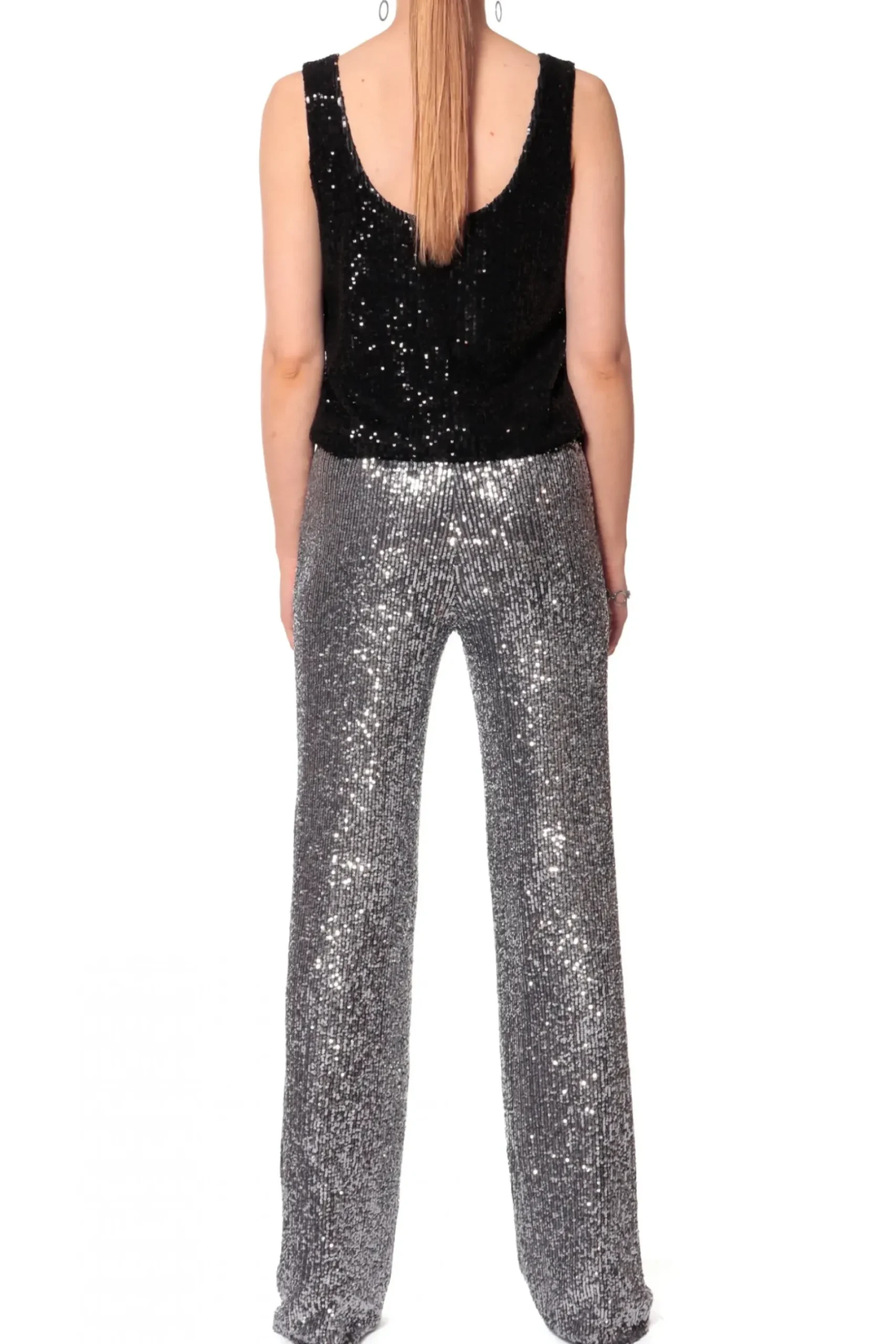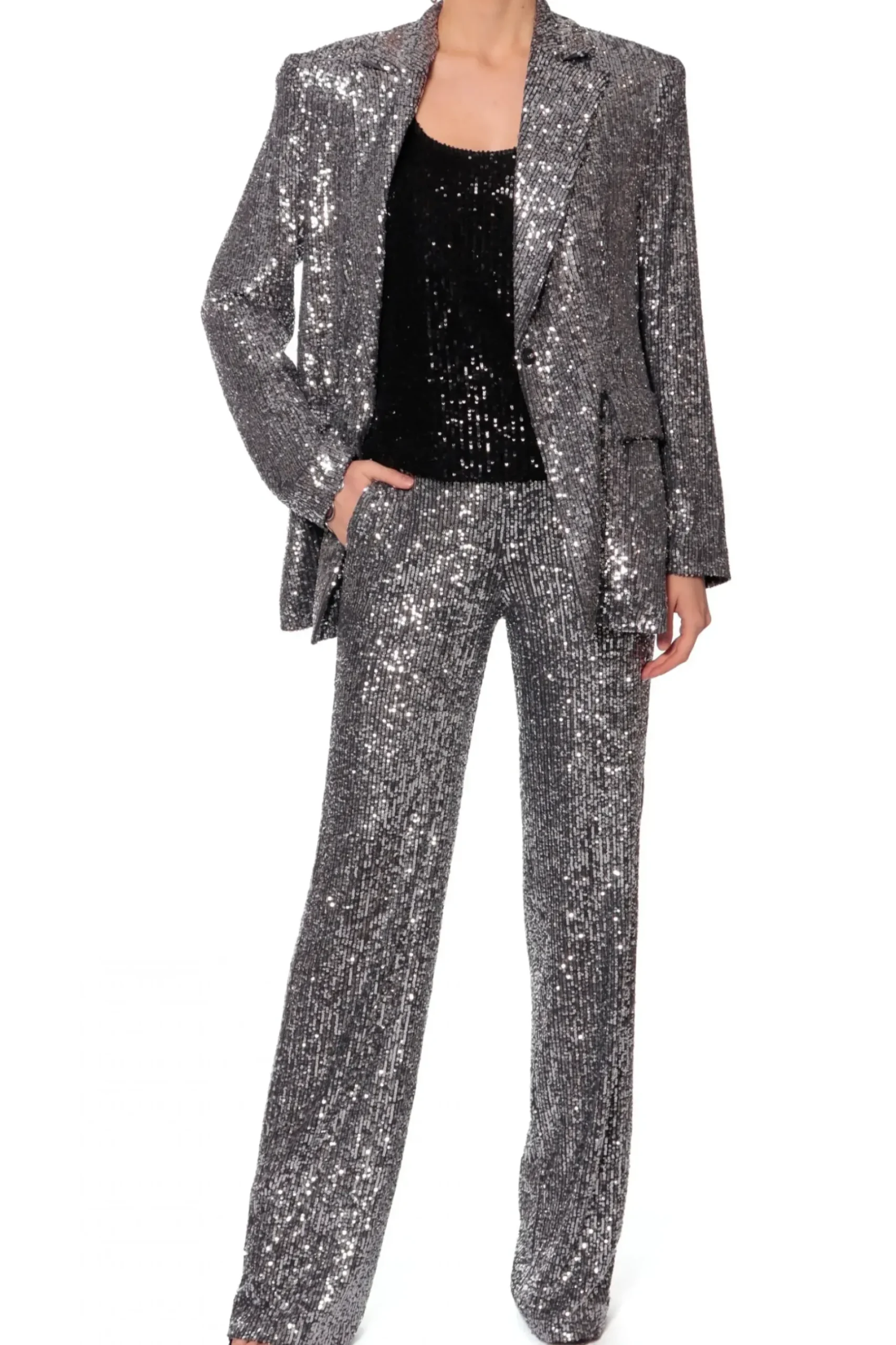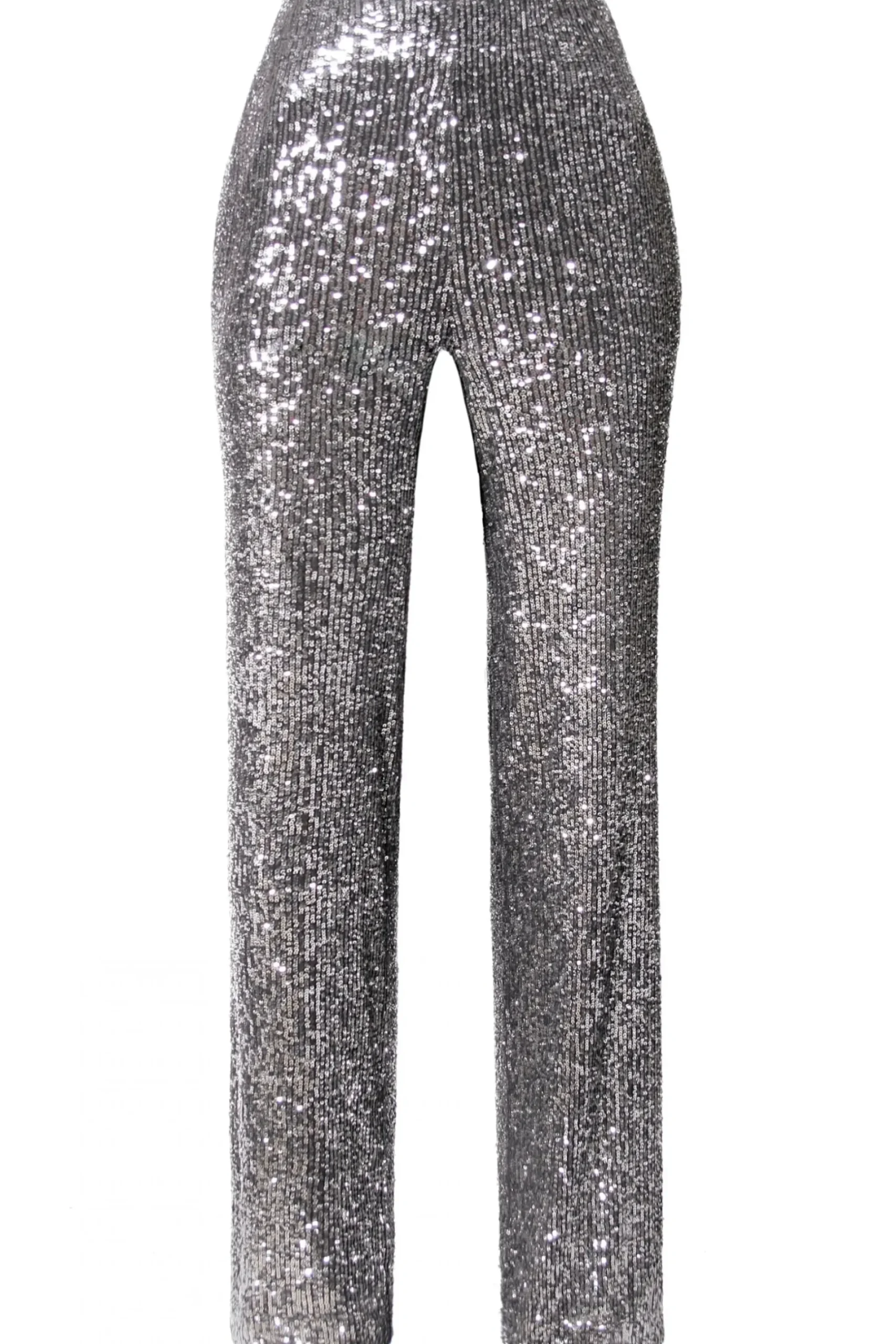 Spodnie Z Wysokim Stanem I Szerokimi Nogawkami Wykonane Z Materialu Wyszywanego Drobnymi Cekinami W Calosci Podszyte Wiskozowa Podszewka. Lekko Elastyczne Wlasciwosci Materialu Zapewniaja Idealne Dopasowanie W Okolicach Talii I Bioder. Z Wygodnymi Bocznymi Kieszeniami, Zapinane Na Zamek Blyskawiczny Z Lewej Strony. Nos Je Z Cekinowym Zakietem Luna Obsidian Black Lub Reina Obsidian Black By Skomponowac Idealna Stylizacje Na Sylwestra Lub Zabawe Karnawalowa.