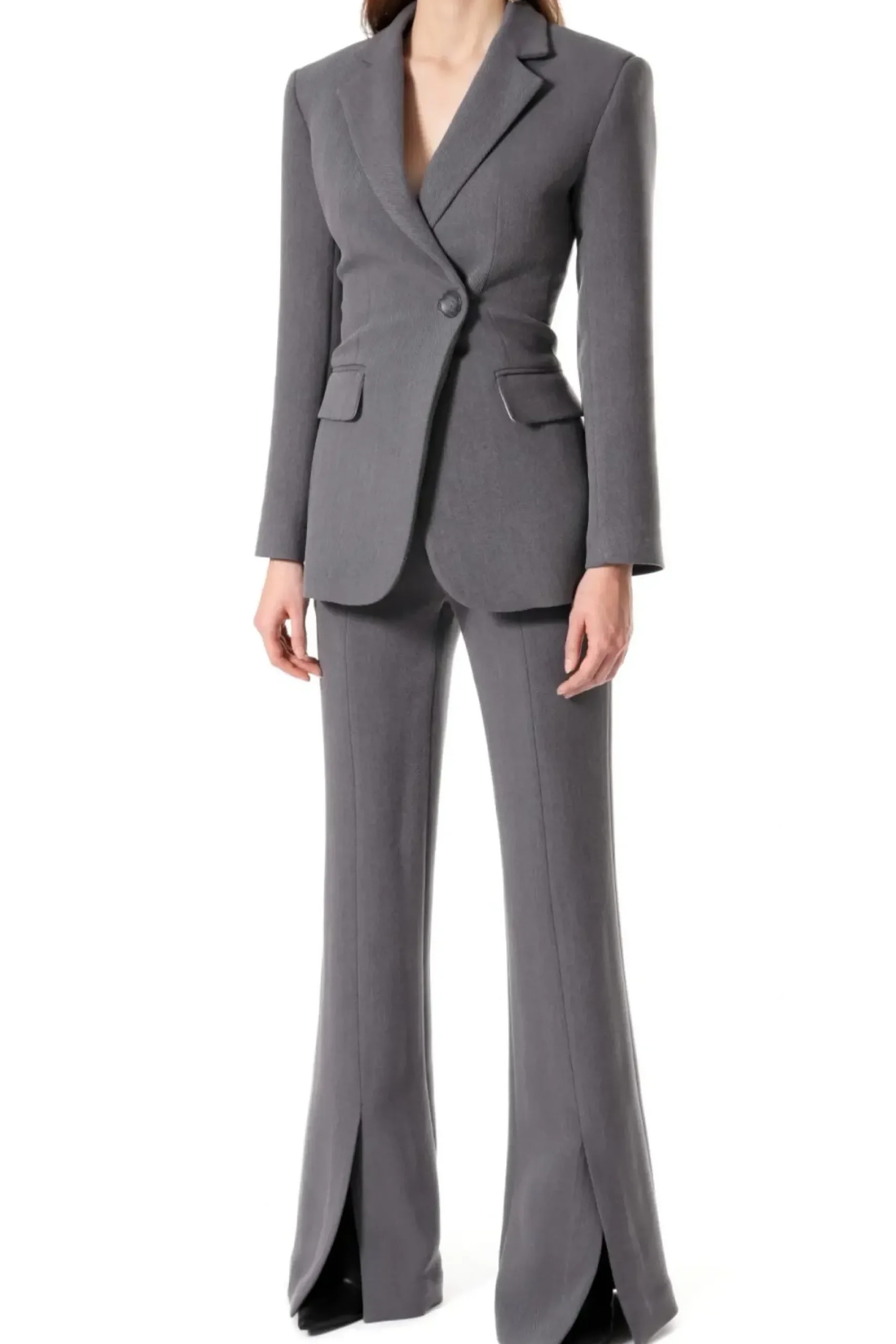 Eleganckie Spodnie Dzwony Z Rozcieciami U Dolu Nogawek. Spodnie Zostaly Wykonane Z Miesistego, Nieco Grubszego Diagonalu Z Widoczna Struktura Splotu. Piekna Linia Nogawek Wymodelowana Tak Aby Wysmuklic I Wydluzyc Nogi. Skompletuj Je Z Marynarka Isabella Designer Black I Nos Wieczorowo Ze Szpilkami Lub Elegancko Z Mokasynami Na Slupku.