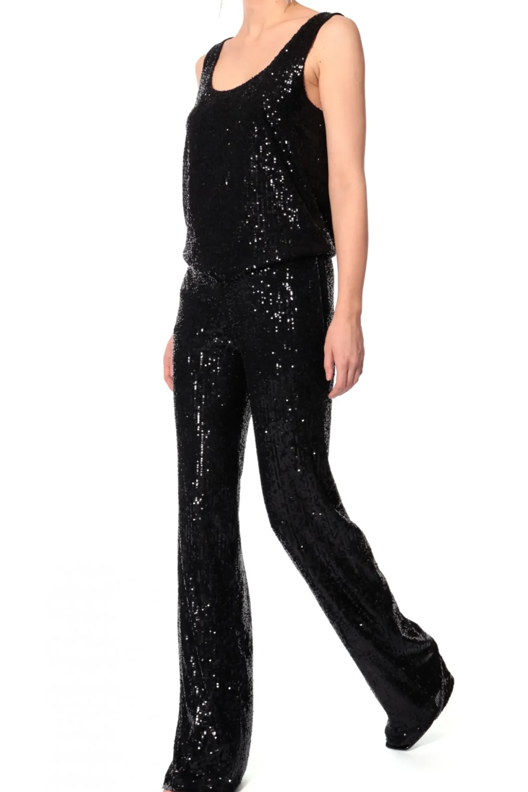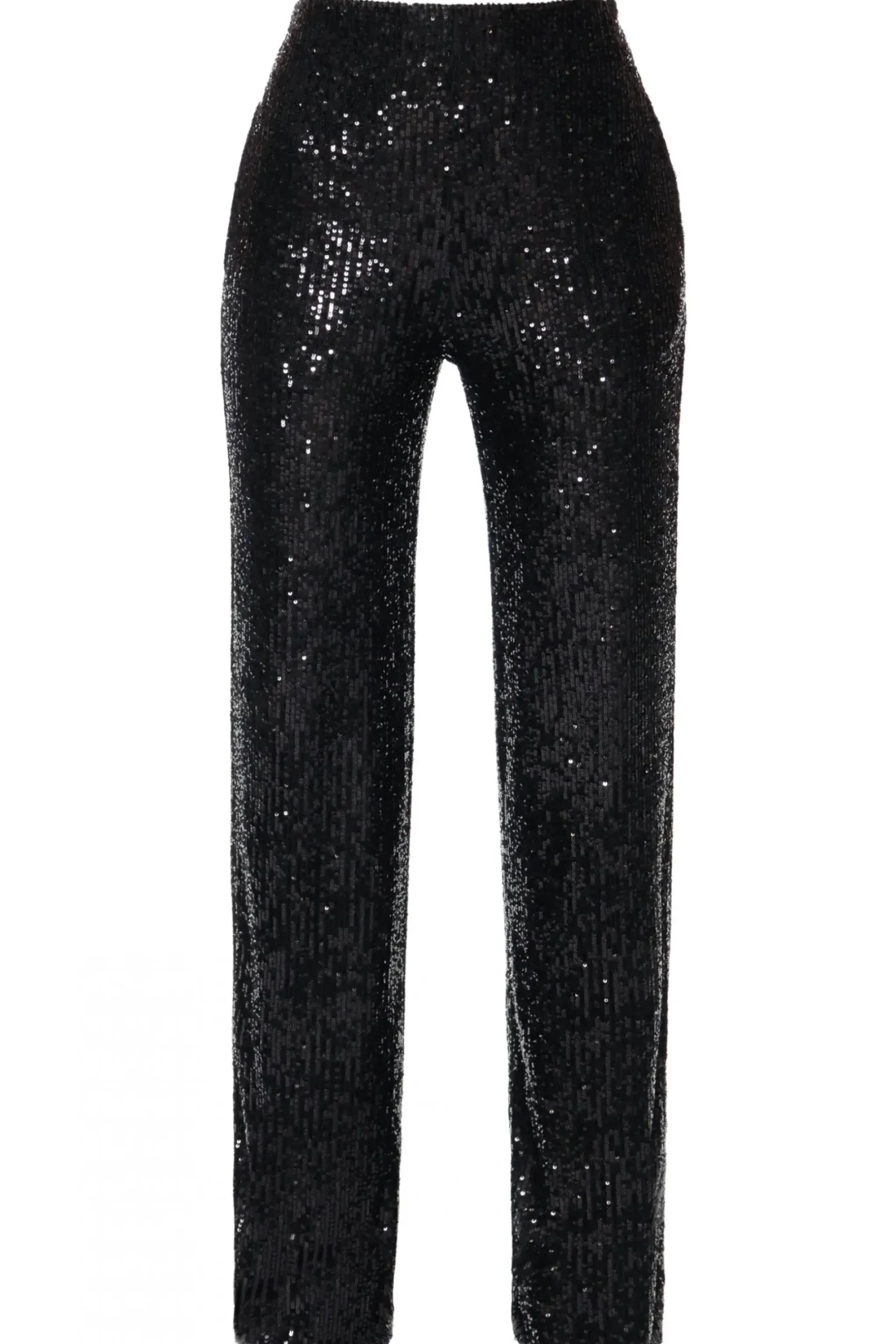 Spodnie Z Wysokim Stanem I Szerokimi Nogawkami Wykonane Z Materialu Wyszywanego Drobnymi Cekinami Podszyte Wiskozowa Poszewka Na Wysokosci Bioder. Lekko Elastyczne Wlasciwosci Materialu Zapewniaja Idealne Dopasowanie W Okolicach Talii I Bioder. Z Wygodnymi Bocznymi Kieszeniami, Zapinane Na Zamek Blyskawiczny Z Lewej Strony. Nos Je Z Cekinowym Zakietem Luna Obsidian Black Lub Topem Reina Obsidian Black By Skomponowac Idealna Stylizacje Na Sylwestra Lub Zabawe Karnawalowa.