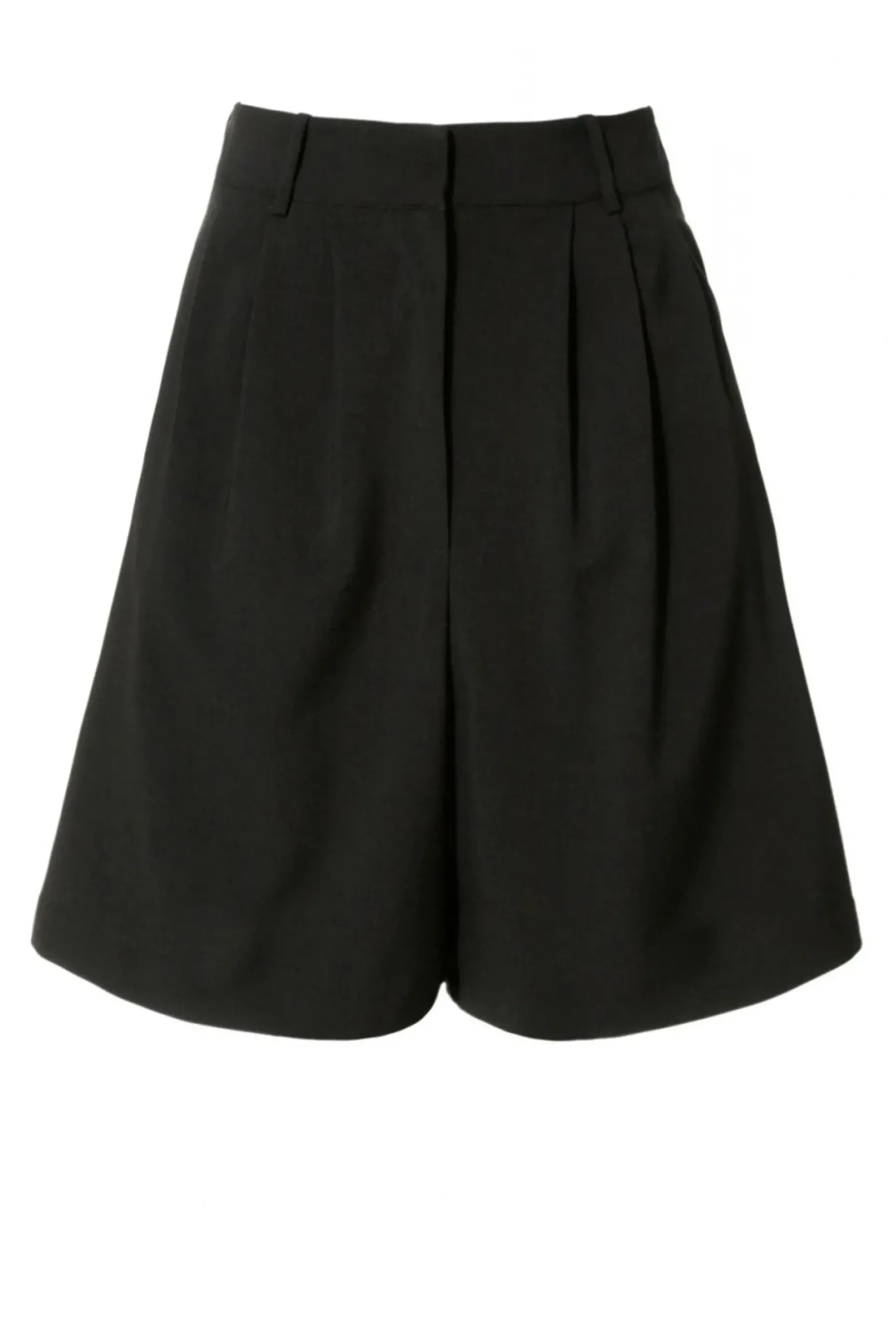 Szerokie Szorty/Bermudy Z Zakladkami Dodajacymi Przestrzeni I Kobiecego Charakteru Projektowi. Wysoki Stan Podkreslajacy Talie. W Szwach Bocznych Ukryte Wygodne Kieszenie.