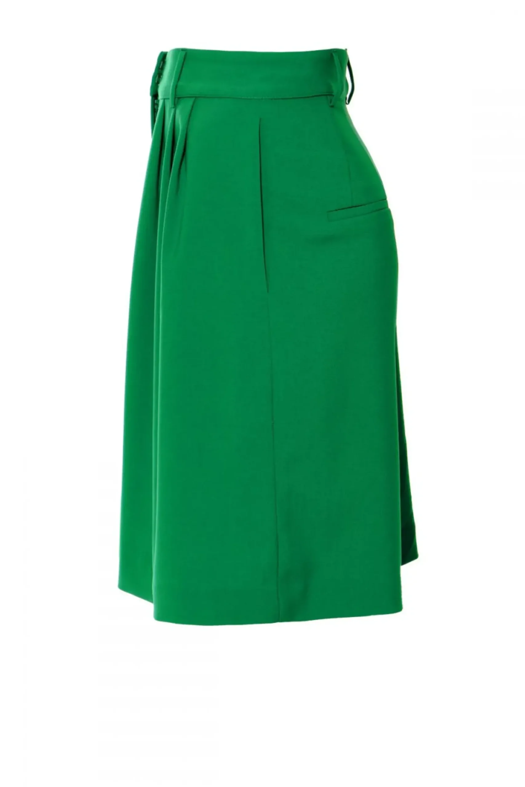 Szerokie Szorty/Bermudy Z Zakladkami Dodajacymi Przestrzeni I Kobiecego Charakteru Projektowi. Wysoki Stan Podkreslajacy Talie. W Szwach Bocznych Ukryte Wygodne Kieszenie.
