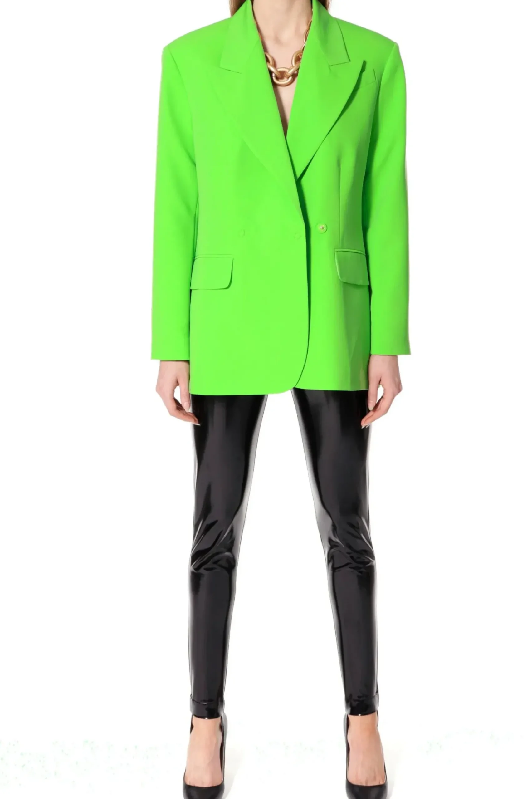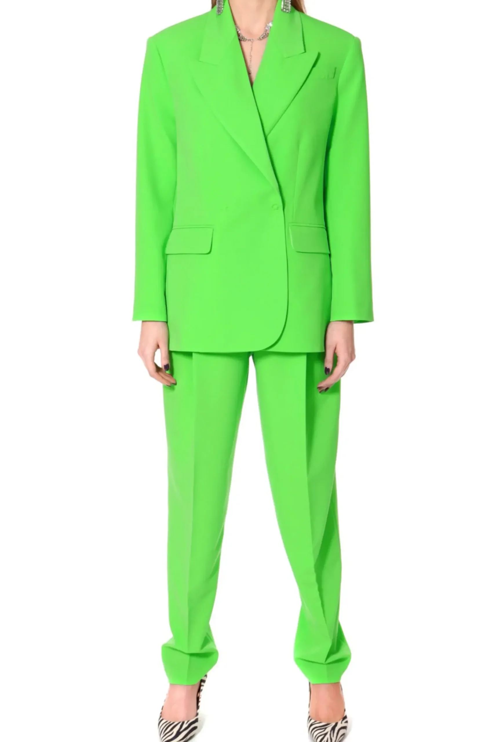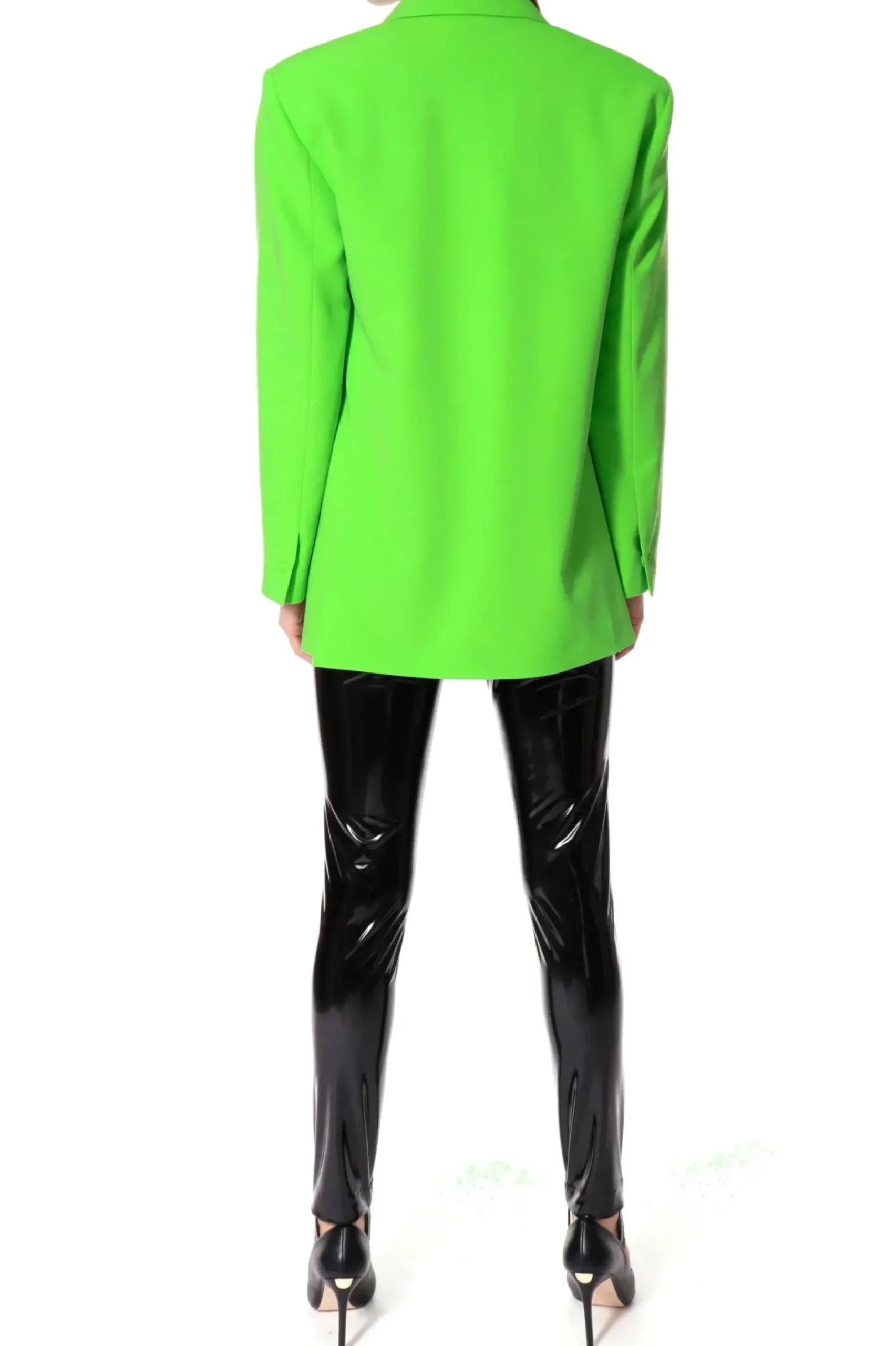 Marynarka O Oversizowym Kroju Inspirowana Marynarka Z Meskiego Garnituru. Maskulinistyczny Fason W Zestawieniu Z Intensywnym Kolorem Tkaniny Tworzy Efektowny, Oryginalny Projekt. Szerokie Klapy, Mocno Zarysowane Ramiona Wystajace Poza Linie Sylwetki, Rozciecia Z Tylu Marynarki.
