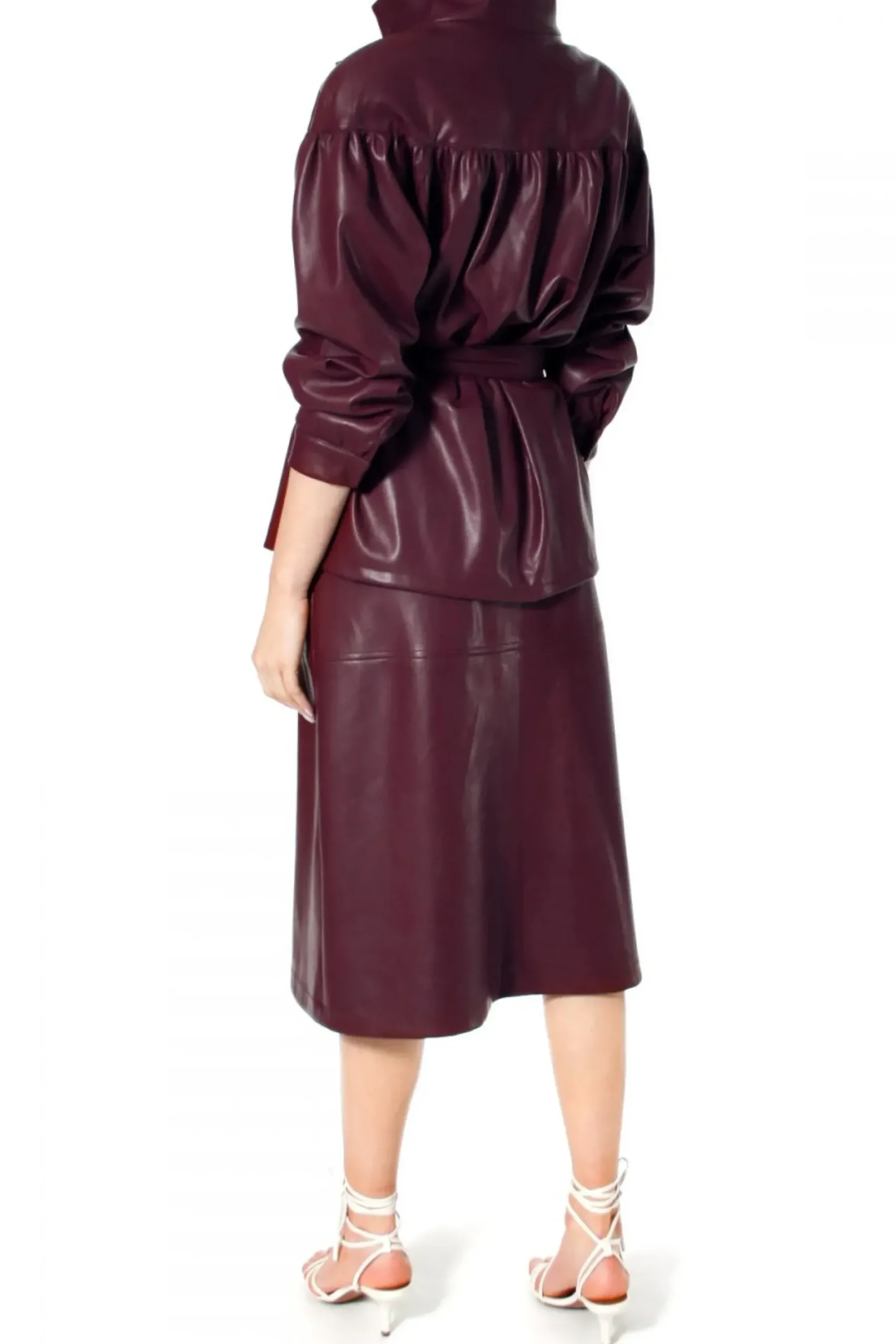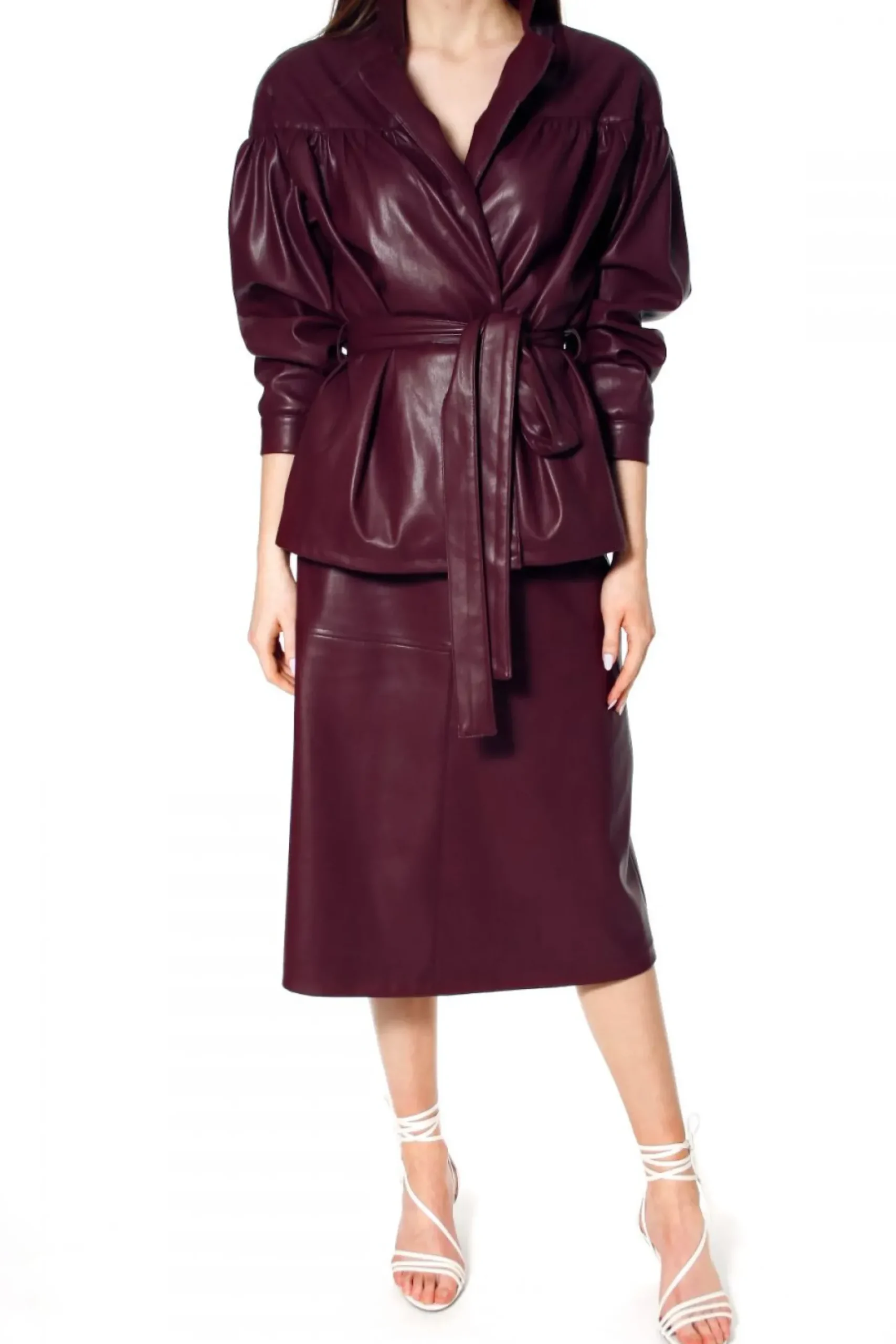 Kurtka Wykonana Z Miekkiej, Delikatnej W Dotyku, Wysokogatunkowej Skory Weganskiej. Projekt Nawiazujacy Do Trendow Lat 80-Tych. Projekt Z Doskonale Dopracowana Konstrukcja Karczka Modelujacego Linie Ramion – Dodatkowo Zaakcentowana Wszytymi Owalnymi Poduszkami. Marszczenie Na Rekawach, Przodach I Plecach Nadajace Przestrzeni Oraz Kobiecego Charakteru Projektowi.