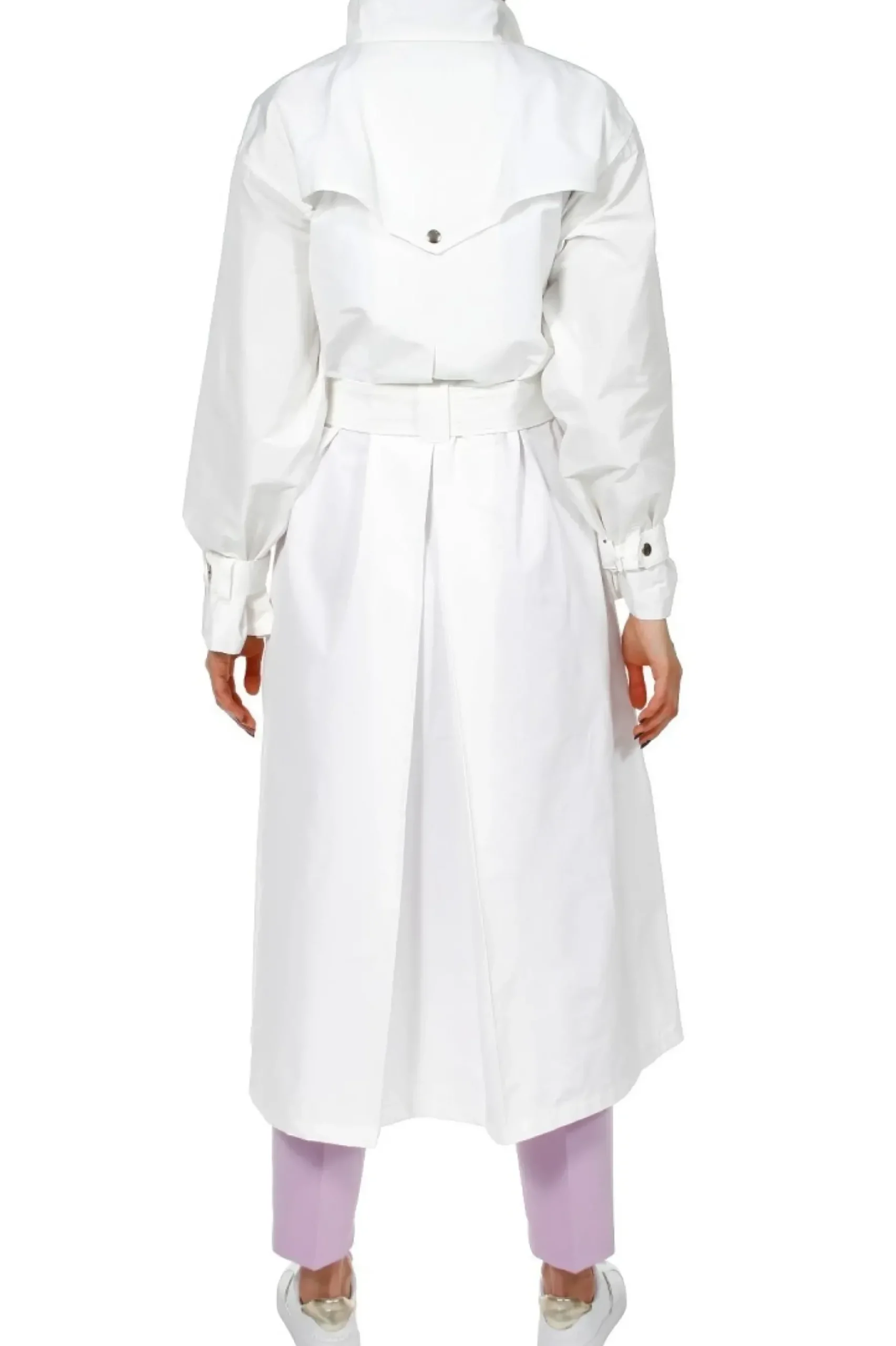 Trencz O Unikatowym Fasonie Na Stojce,Uszyty Z Wysokogatunkowej Mieszanki Bawelny I Nylonu. Tkanina Typu Memory Pozwala Podkreslic Przestrzenna Forme Plaszcza.Luzna Forma Rozszerzajaca Sie Ku Dolowi. Calosc Zapinana Na Zatrzaski W Srebrnym Kolorze.Na Plecach Gleboka Kontrafalda. Ozdobne Karczki Na Plecach I Na Przodzie Przypiete Zatrzaskami.Obfite Rekawy Wykonczone Szlufkami I Paseczkiem Umozliwiajacym Regulacje Szerokosci Rekawa Na Dole.Talia Podkreslona Paskiem Z Metalowa Klamra.Glebokie Kieszenie Wykonczone Patkami Zapinane Na Zatrzaski. Plaszcz Nie Posiada Podszewki. Wykonczony Zostal Z Duza Pieczolowitoscia Lamowkami.