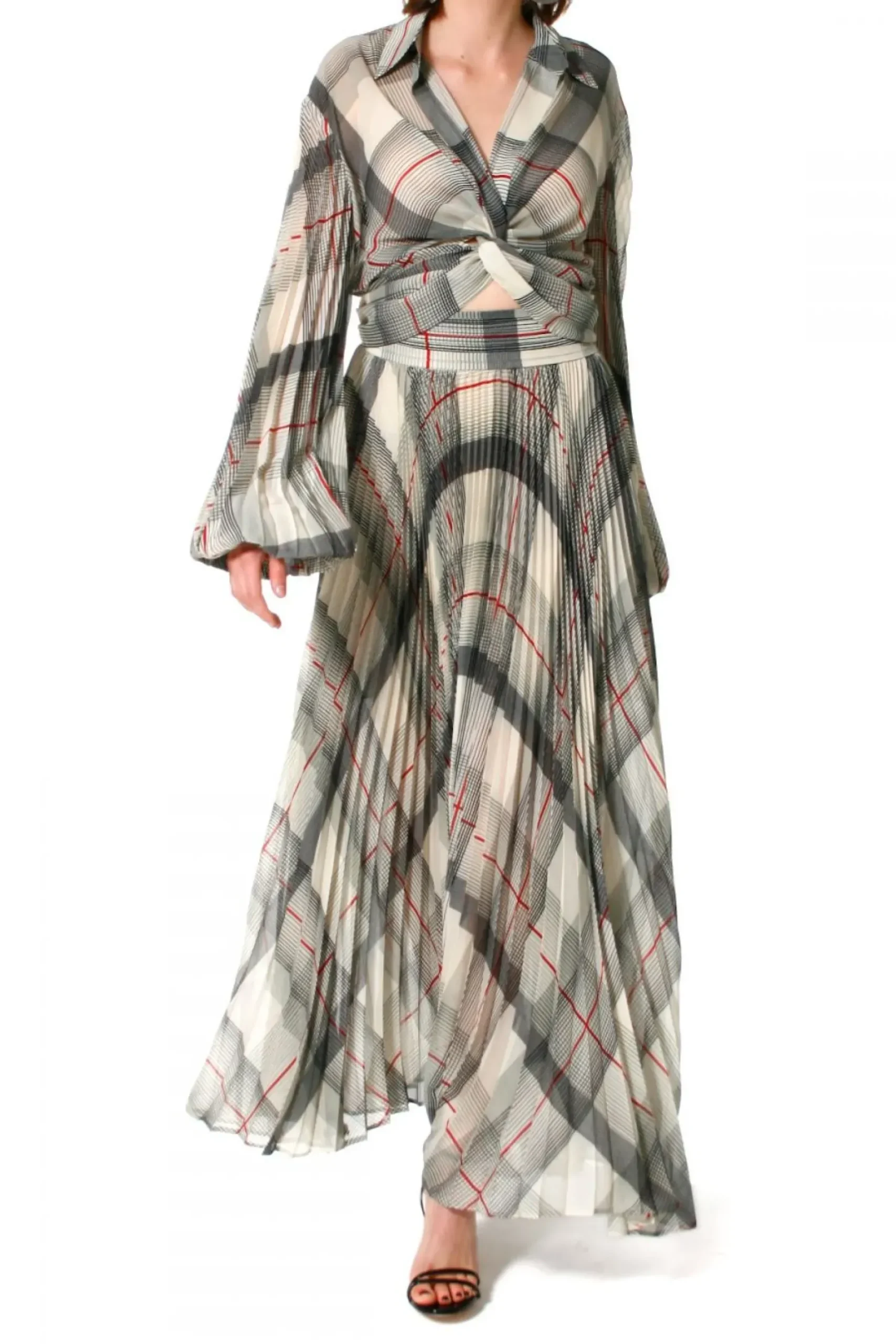 Romantyczna Dlugosc Maxi Kontrastuje W Pozostajacym W Opozycji Kraciastym, Lekko Surowym Wzorem Tkaniny.