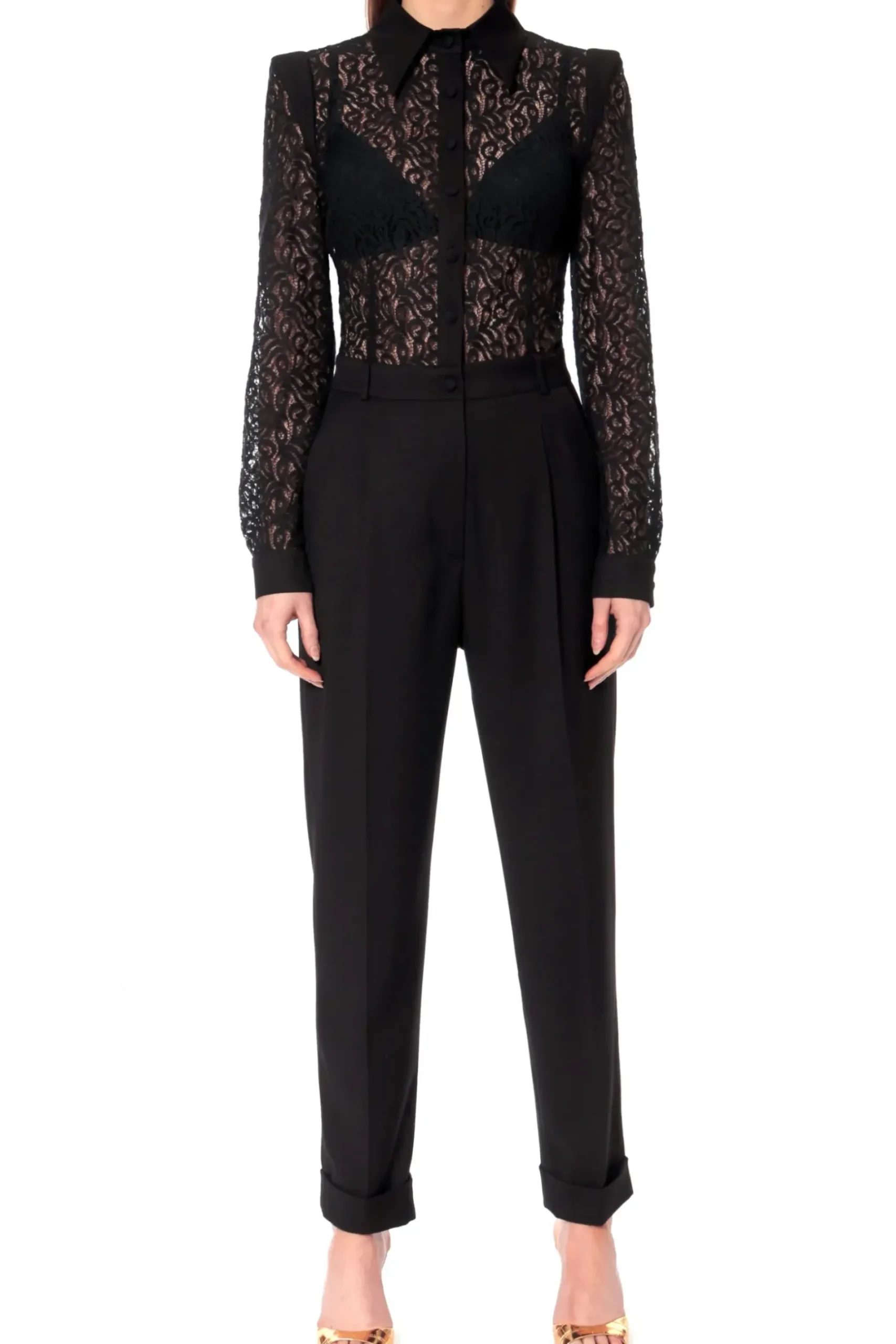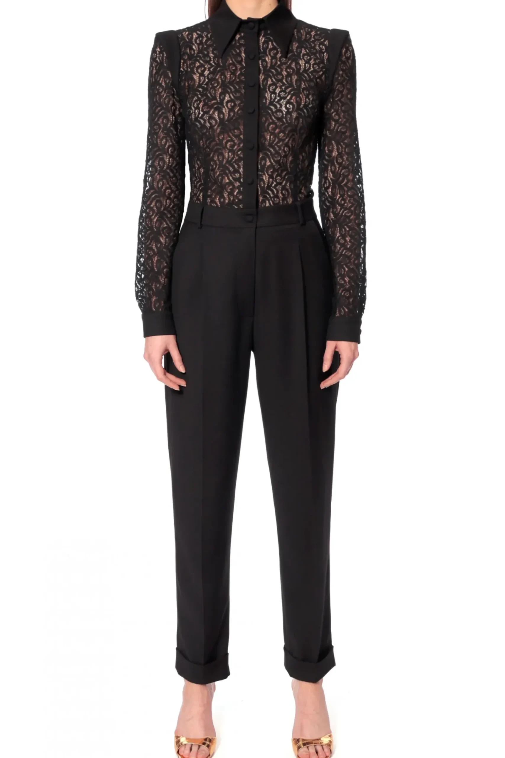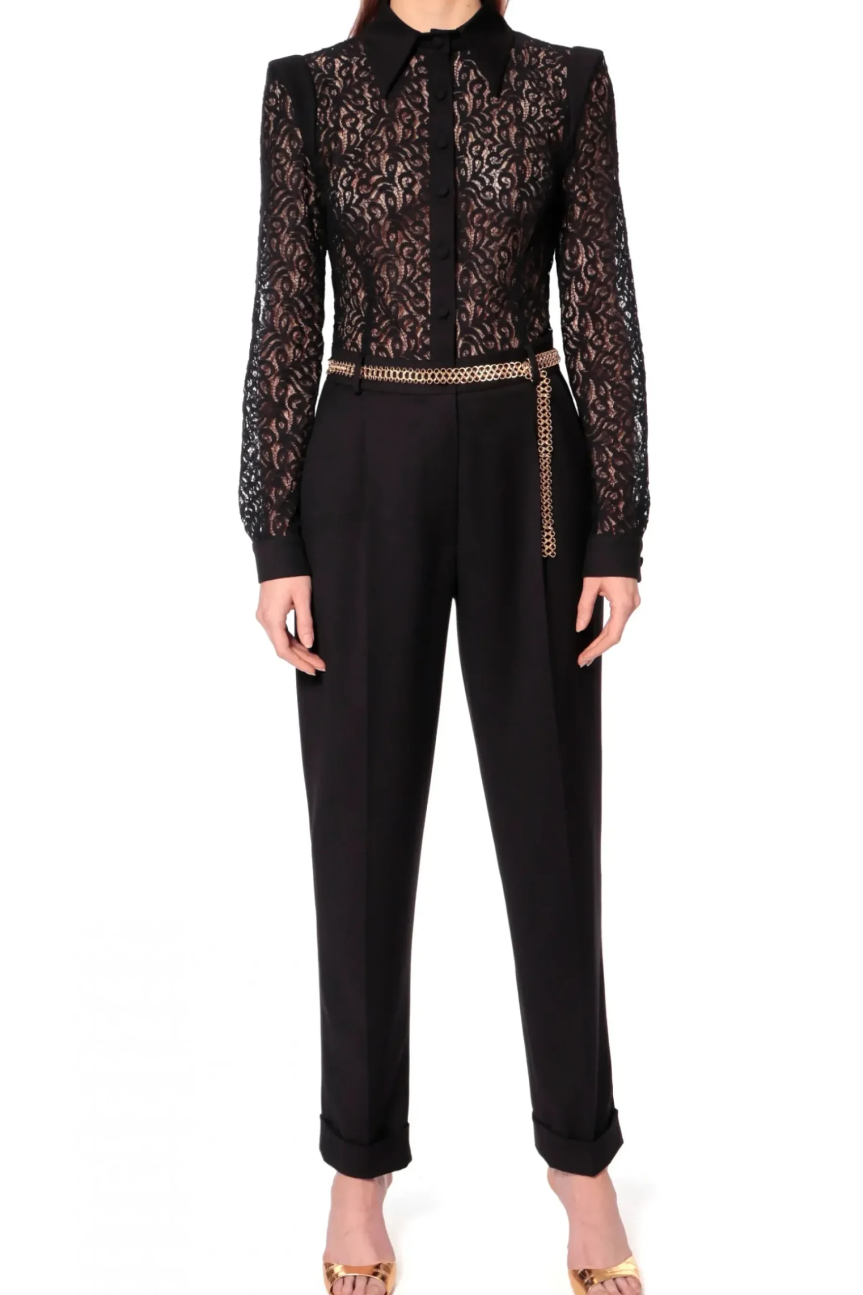 Romantyczny Kombinezon Z Sensualnym Koronkowym Topem, Podkreslajacy Kobieca Sylwetke. Zapiecie Na Male Oblekane Guziczki, Laczenia Rekawow I Mankiety Oraz Spiczasty Kolnierzyk Nadaja Wyjatkowy Charakter Misternie Wykonanej Koronce. Wygodne Kieszenie Boczne.
