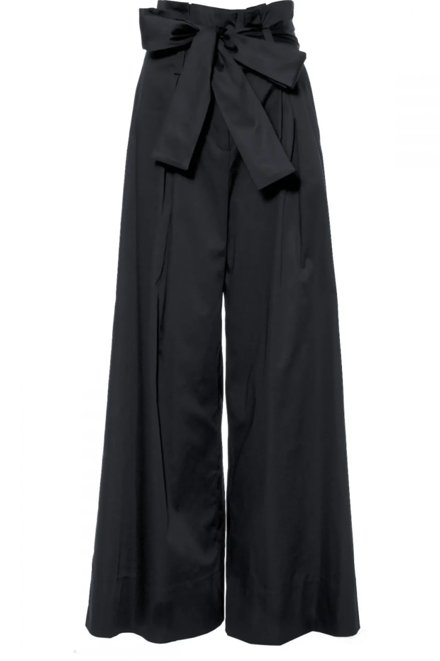 Spodnie Z Talia Typu Paper Bag Uszyte Z Cienszej Lecz Lekko Sztywnej Bawelny O Delikatnym Blysku Z Dodatkiem Elastanu.