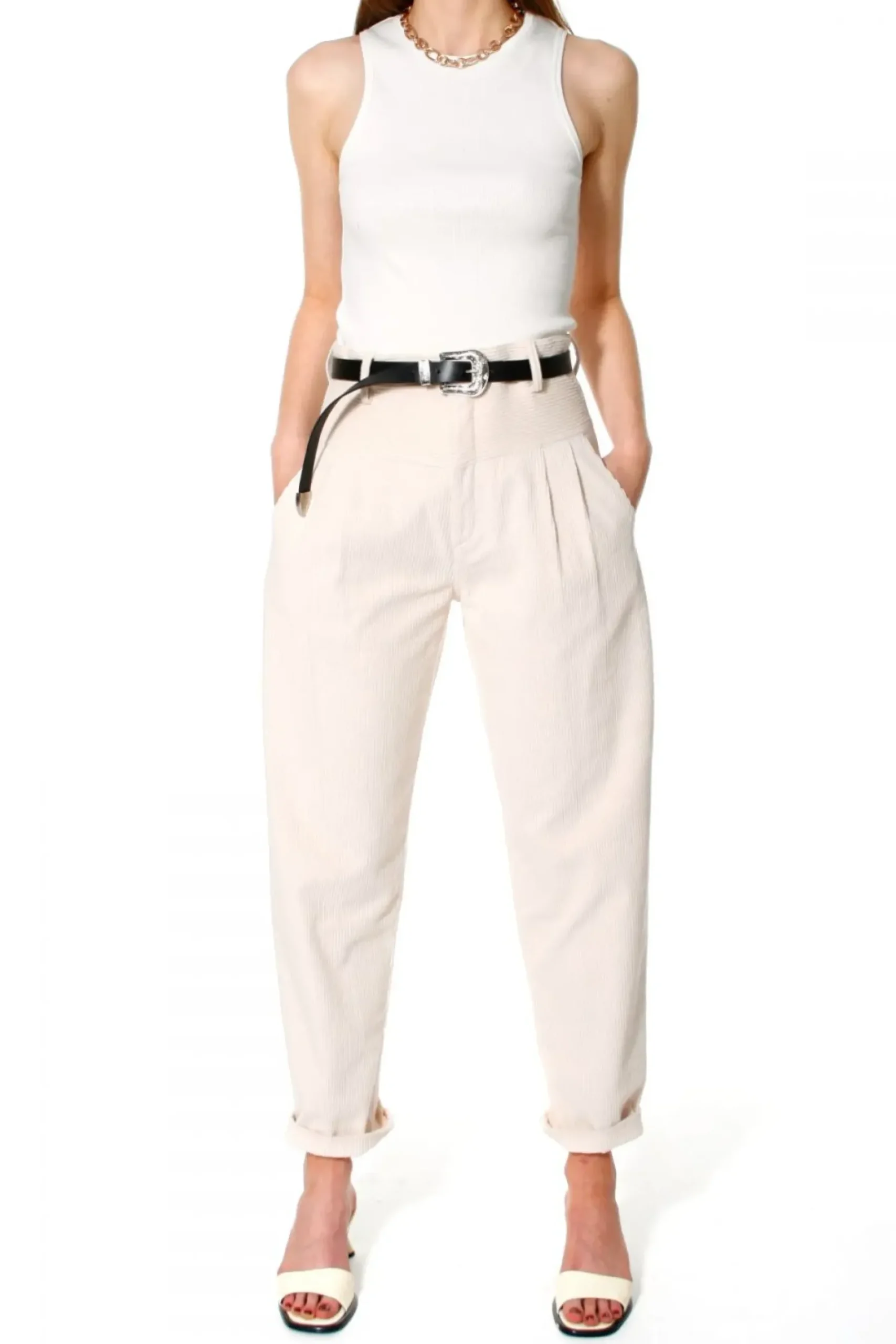 Sztruksowe Spodnie Z Karczkiem Nawiazujace Do Stylu Lat 80-Tych. Z Przodu Dodajace Przestrzeni Zakladki, Rozszerzane W Udach Balonowe Nogawki Zwezajace Sie Ku Dolowi. Z Przodu Ukosne Kieszenie. Z Tylu Dwie Duze Nakladane Kieszenie. Uszyte Sa Z Miekkiej Tkaniny Sztruksowej O Sredniej Grubosci Prazka. Dodatek Elastanu Niesie Za Soba Komfort W Swobodzie Ruchow I Zapobiega Wypychaniu Sie Tkaniny Na Posladkach I Kolanach. Nos Je Z Butami Typu Moules Lub Botkami. Do Sportowych Stylizacji Dobierz Do Nich Sneakersy.
