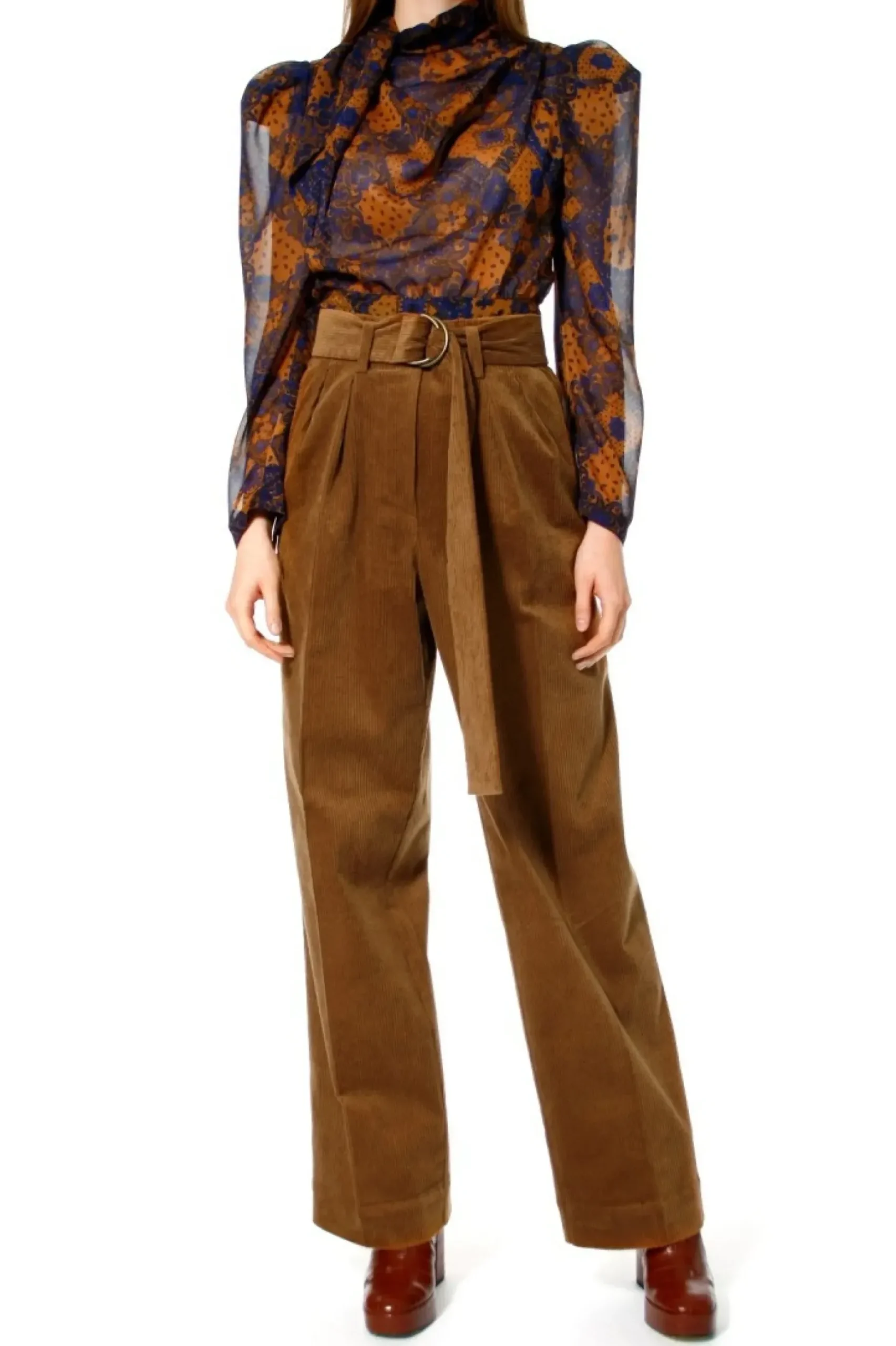 Szerokie Spodnie Typu Szwedy Ze Sztruksu Z Zakladkami Na Przodzie. W Talii Pasek Z Klamerka W Kolorze Starego Zlota. Model Posiada Boczne Kieszenie, Szlufki Na Pasku Oraz Ciete Kieszonki Z Wypustka Z Tylu. Model Inspirowany Postaciami Grety Garbo I Marleny Dietrich. Nos Je Do Mokasynow, Botkow Na Koturnie Lub Wspolczesnie W Stylu Sportowej Elegancji Do Sneakersow. Spodnie Sztruksowe Z Wysoka Talia, Sztruksy O Fasonie Szwedy.