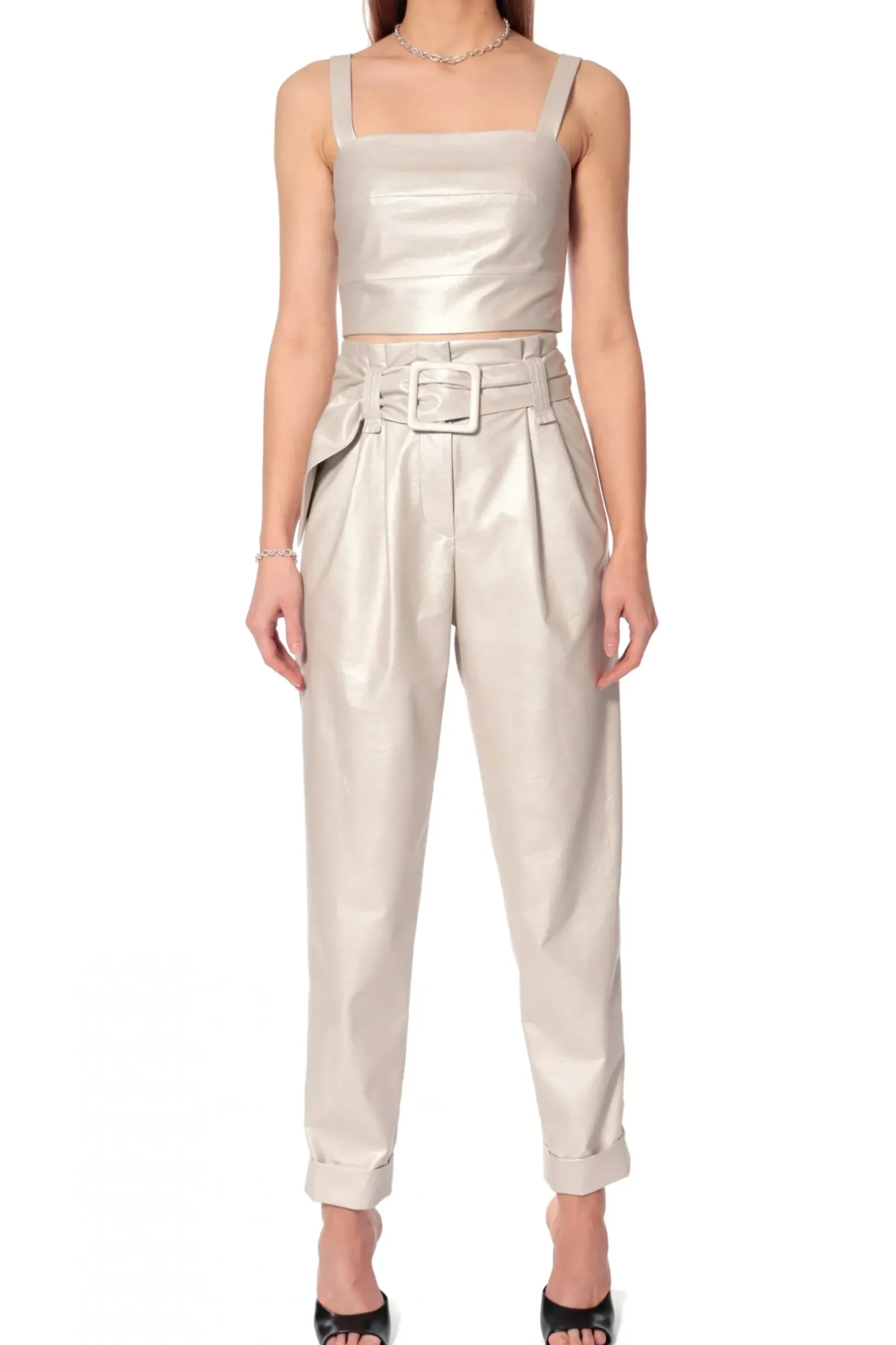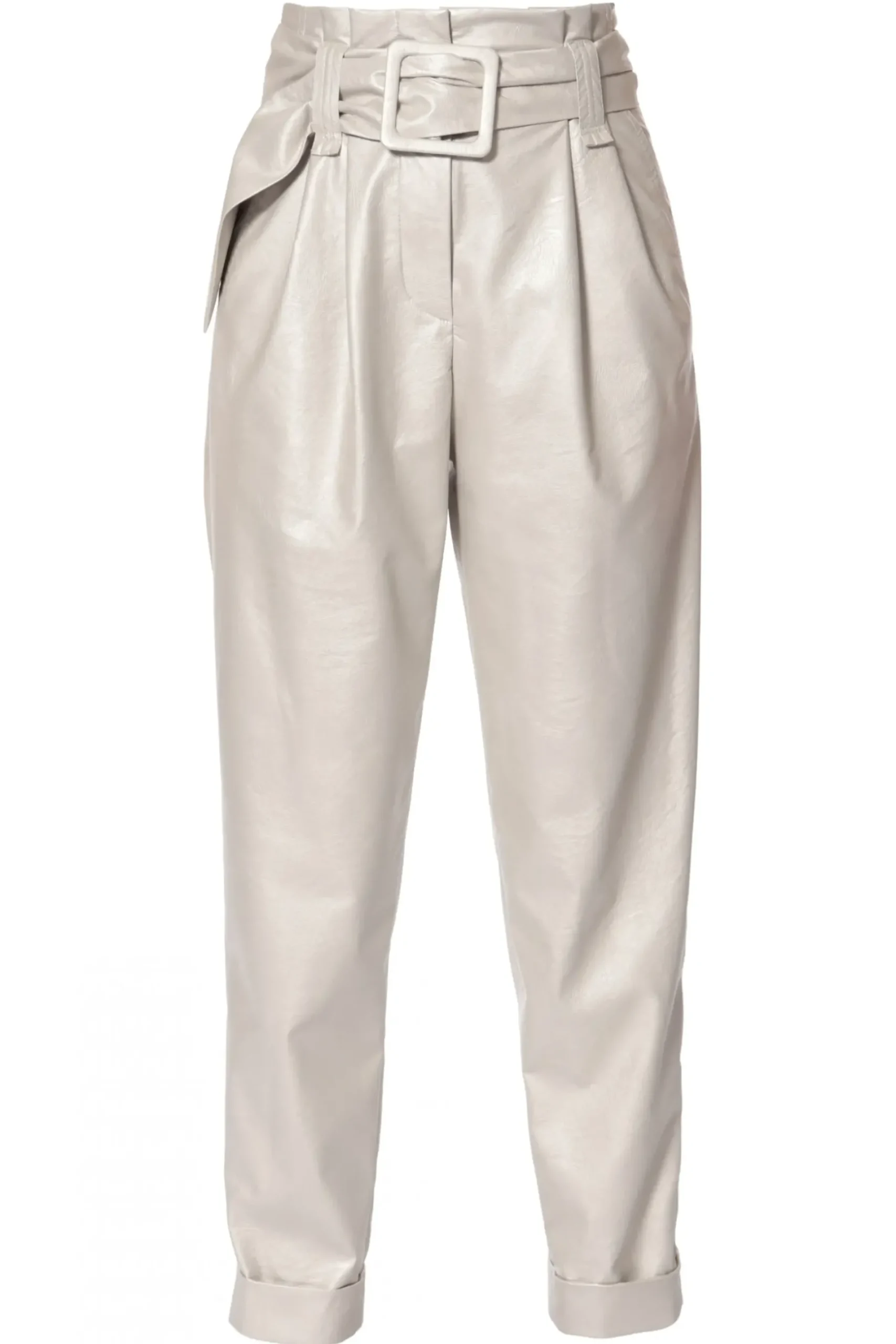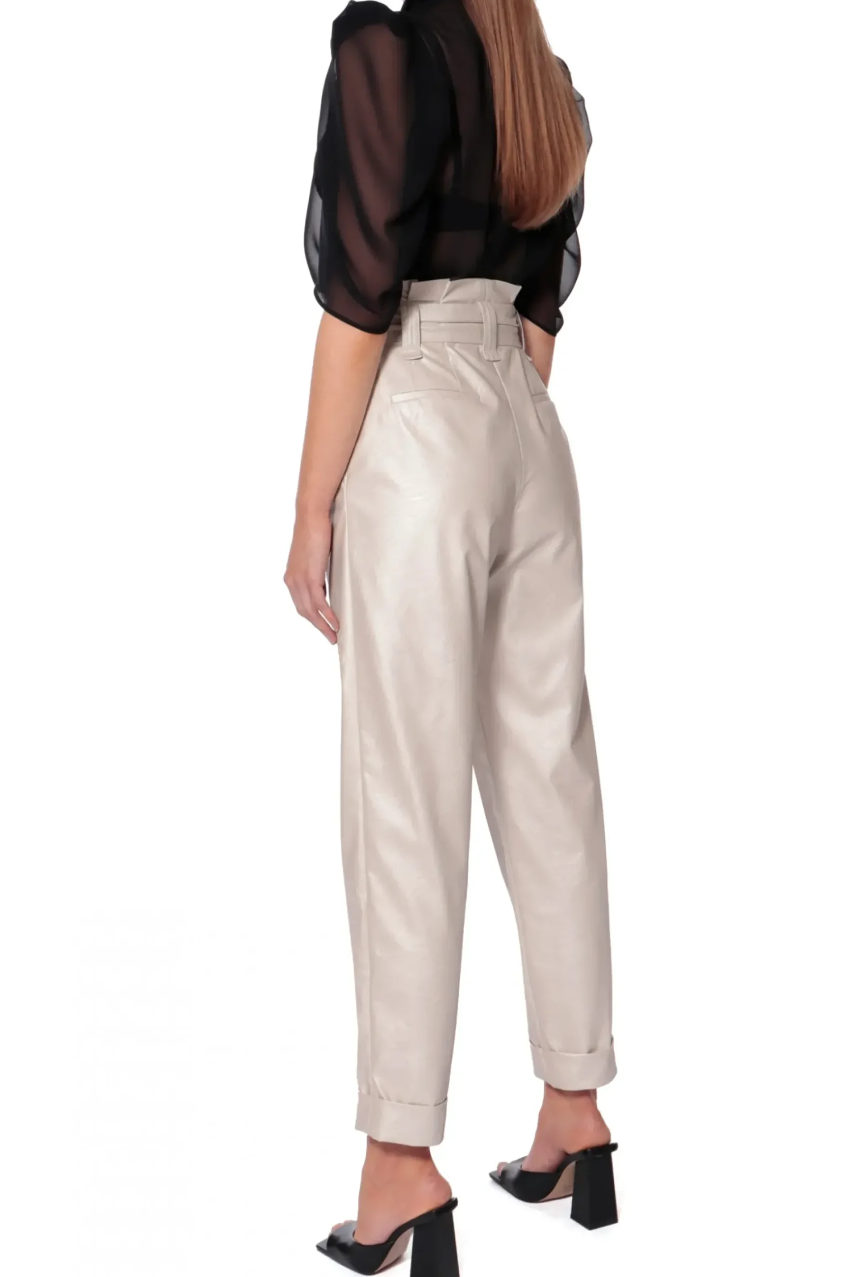 Spodnie Typu Paperbag Uszyte Z Nieco Cienszej, Wysokogatunkowej Skory Weganskiej. Ozdobne Stebnowane Szlufki, Efektowny Pasek Z Oblekana Klamra, Wygodne Boczne Kieszenie Oraz Ciete Kieszonki Z Tylu. Luzna Linia Nogawek Z Mankietami Nadaje Stylizacji Bardziej Nonszalanckiego Charakteru. Ten Bardzo Modowy Projekt Spodni Swietnie Komponuje Sie Ze Szpilkami, Krotkimi Botkami.