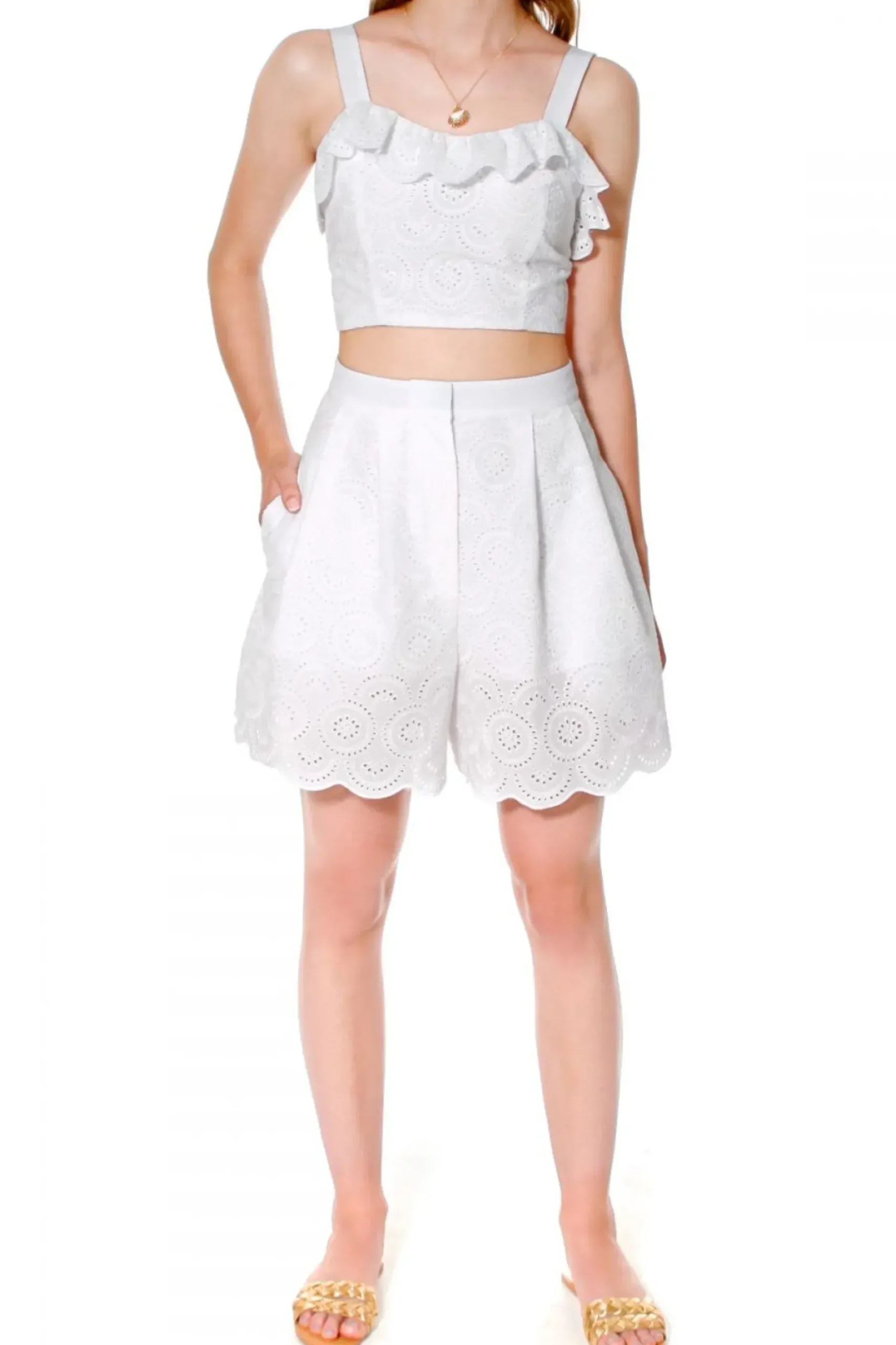 Szorty W Romantycznym Stylu Francuskiej Riwiery. Projekt Z Glebokimi Zakladkami Wykonany Z Gesto Haftowanej Bawelny Z Pieknym Azurowym Wykonczeniem Nogawek. Niezwykle Kobieca Linia Szortow, Ktora Tworzy Wysoka Talia I Trapezowy Ksztalt Nogawek Idealnie Komponuje Sie Z Krotkim Topem Lub Bandeau. W Szwach Bocznych Kieszenie. Szorty Czesciowo Na Podszewce Z Bawelnianego Woalu. Nos Je Do Sandalow, Espadryli, Botkow Oraz Sneakersow.