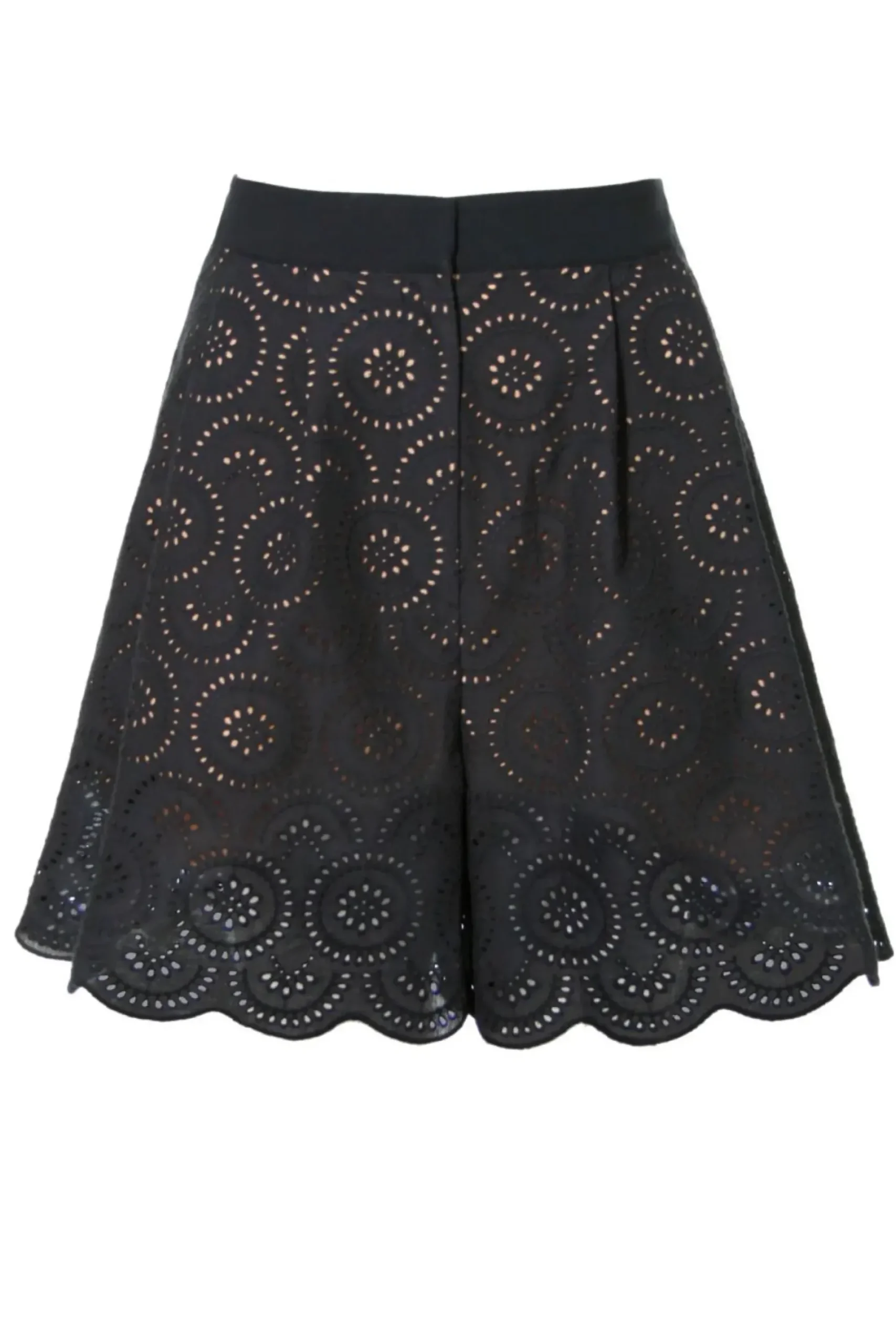 Szorty W Romantycznym Stylu Francuskiej Riwiery.Projekt Z Glebokimi Zakladkami Wykonany Z Gesto Haftowanej Bawelny Z Pieknym Azurowym Wykonczeniem Nogawek.Niezwykle Kobieca Linia Szortow, Ktora Tworzy Wysoka Talia I Trapezowy Ksztalt Nogawek Idealnie Komponuje Sie Z Krotkim Topem Lub Bandeau.W Szwach Bocznych Kieszenie. Szorty Czesciowo Na Podszewce Z Bawelnianego Woalu W Cielistym Kolorze.Nos Je Do Sandalow, Espadryli, Botkow Oraz Sneakersow.