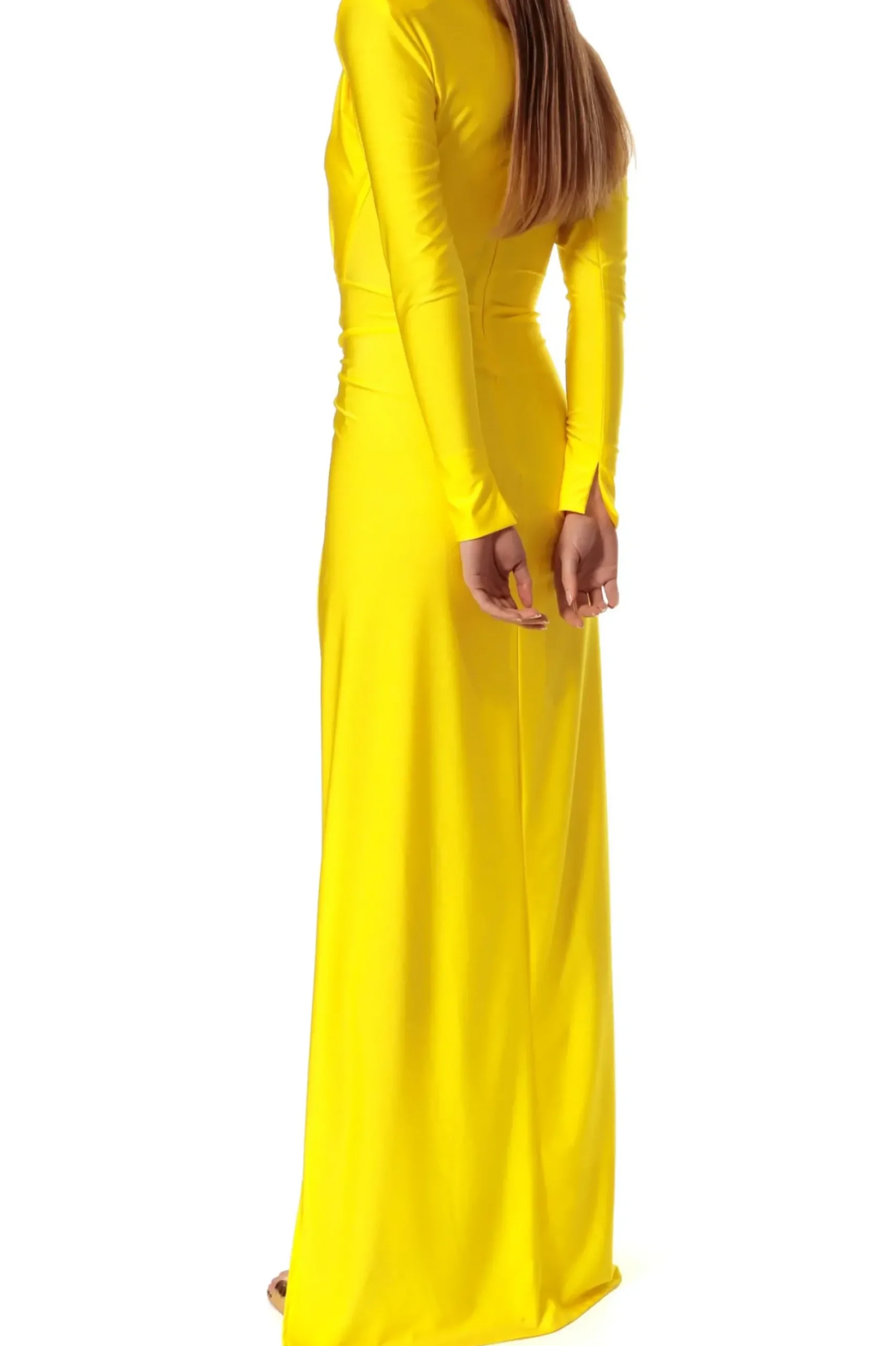 Suknia Maxi Uszyta Z Elastycznego, Miekko Podkreslajacego Sylwetke Materialu O Subtelnym Polysku. Zabudowana Linia Dekoltu, Dlugie Smukle Rekawy, Dlugosc Maxi Artystycznie Wydobywa Sensualnosc Kobiecej Sylwetki Zdecydowanym, Ukosnym Rozcieciem Miedzy Piersiami Oraz Ekscytujaco Eksponujacym Noge. Drapowania Zalamuja Swiatlo Podkreslajac Kunszt Precyzyjnej Pracy Wykonanej W Naszej Pracowni. Ramiona Zaakcentowane Poduszkami. Zapinana Na Kryty Zamek Blyskawiczny.