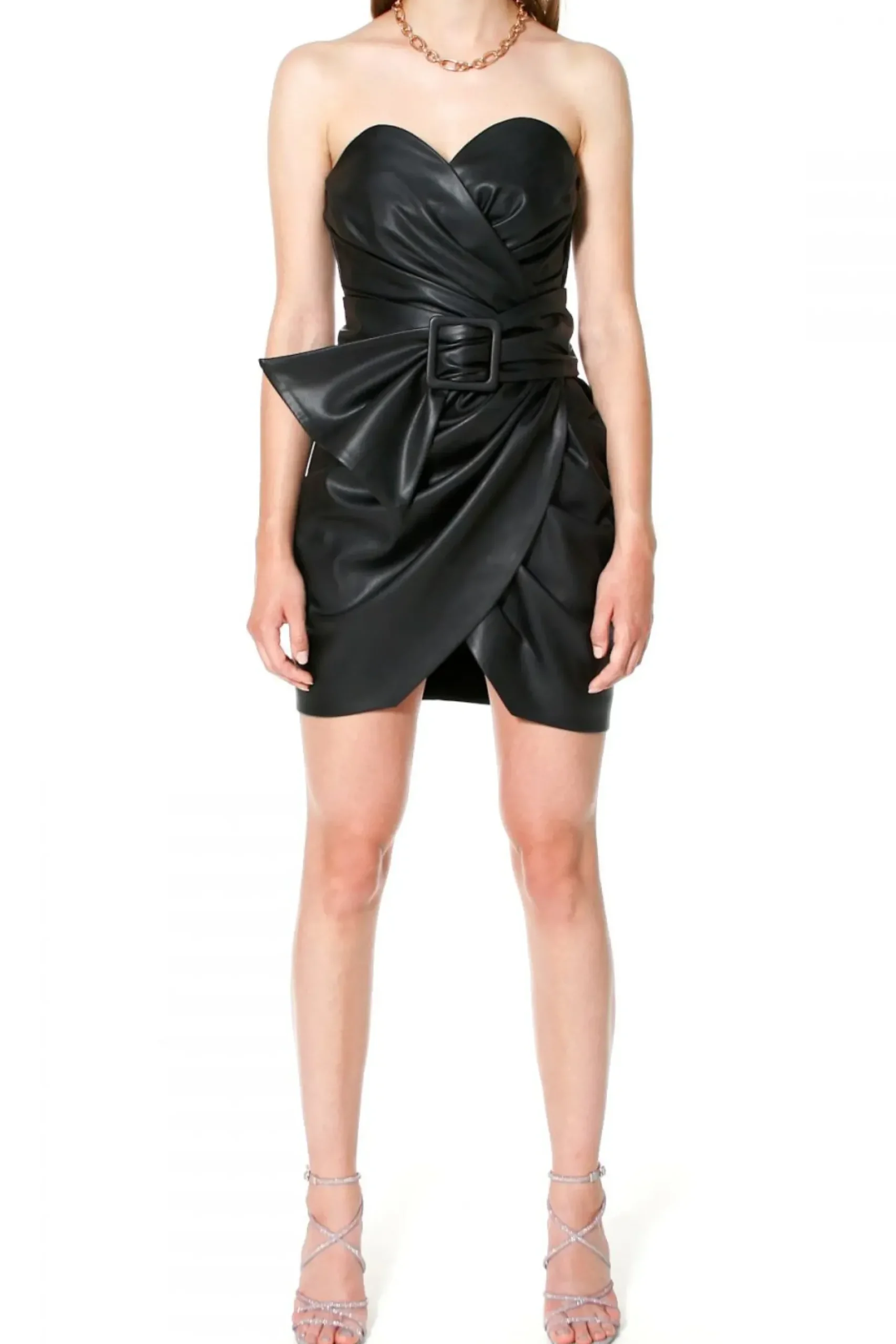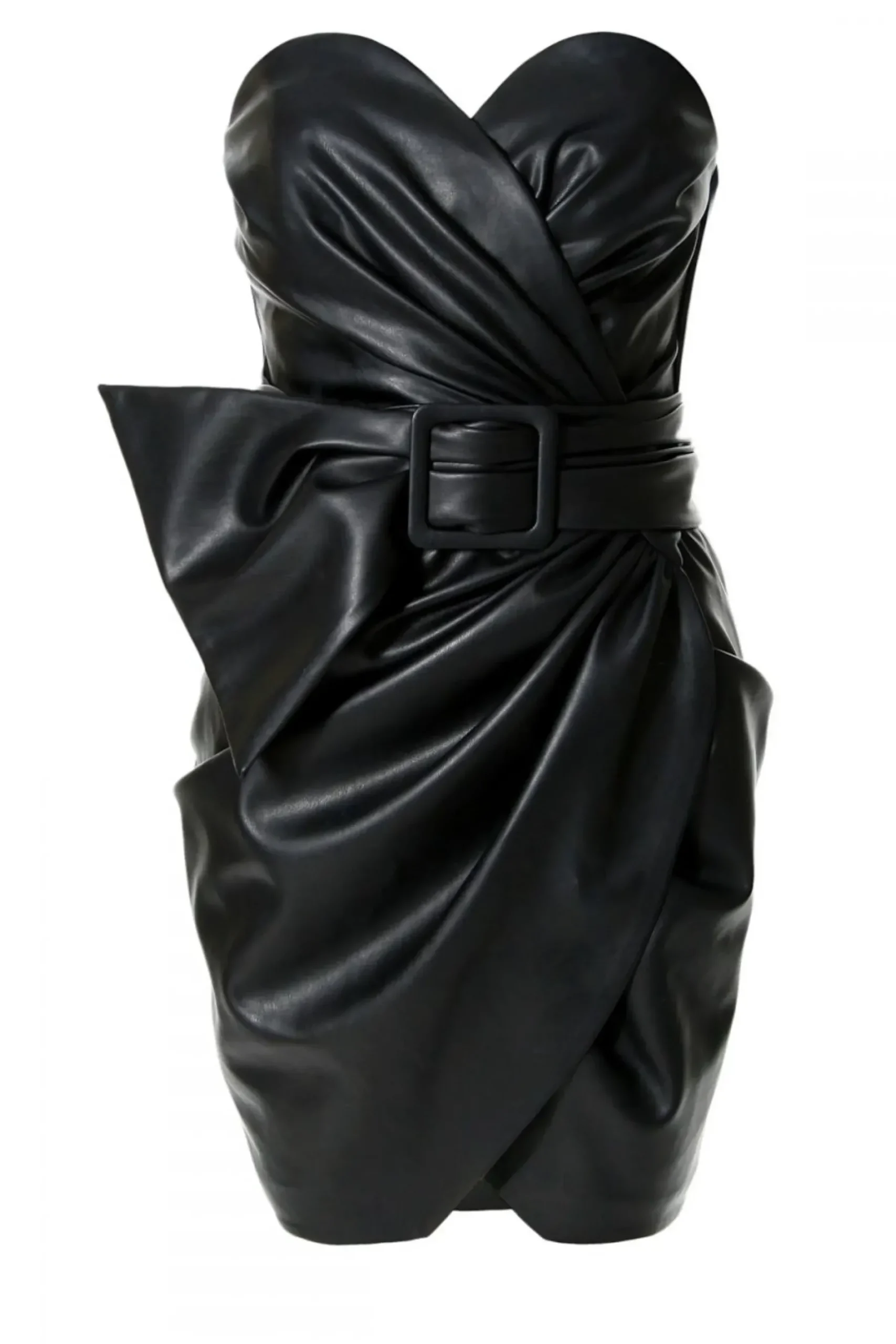 Ekstrawagancka Sukienka Mini Wykonana Z Delikatnej, Wysokogatunkowej Skory Weganskiej.Rzezbiarskie Drapowania I Promieniscie Ulozone Zakladki Mistrzowsko Buduja Kobieca Sylwetke Klepsydry.Cienka, Delikatna Skora Weganska Zastosowana W Tym Projekcie Od Spodu Jest Pokryta Wykonczeniem Bawelnianym, Bardzo Przyjaznym Dla Skory.Sukienka Ma Wyprofilowane Miseczki Na Biust I Wszyte Fiszbiny, Co Idealnie Dopasowuje Projekt Do Sylwetki.