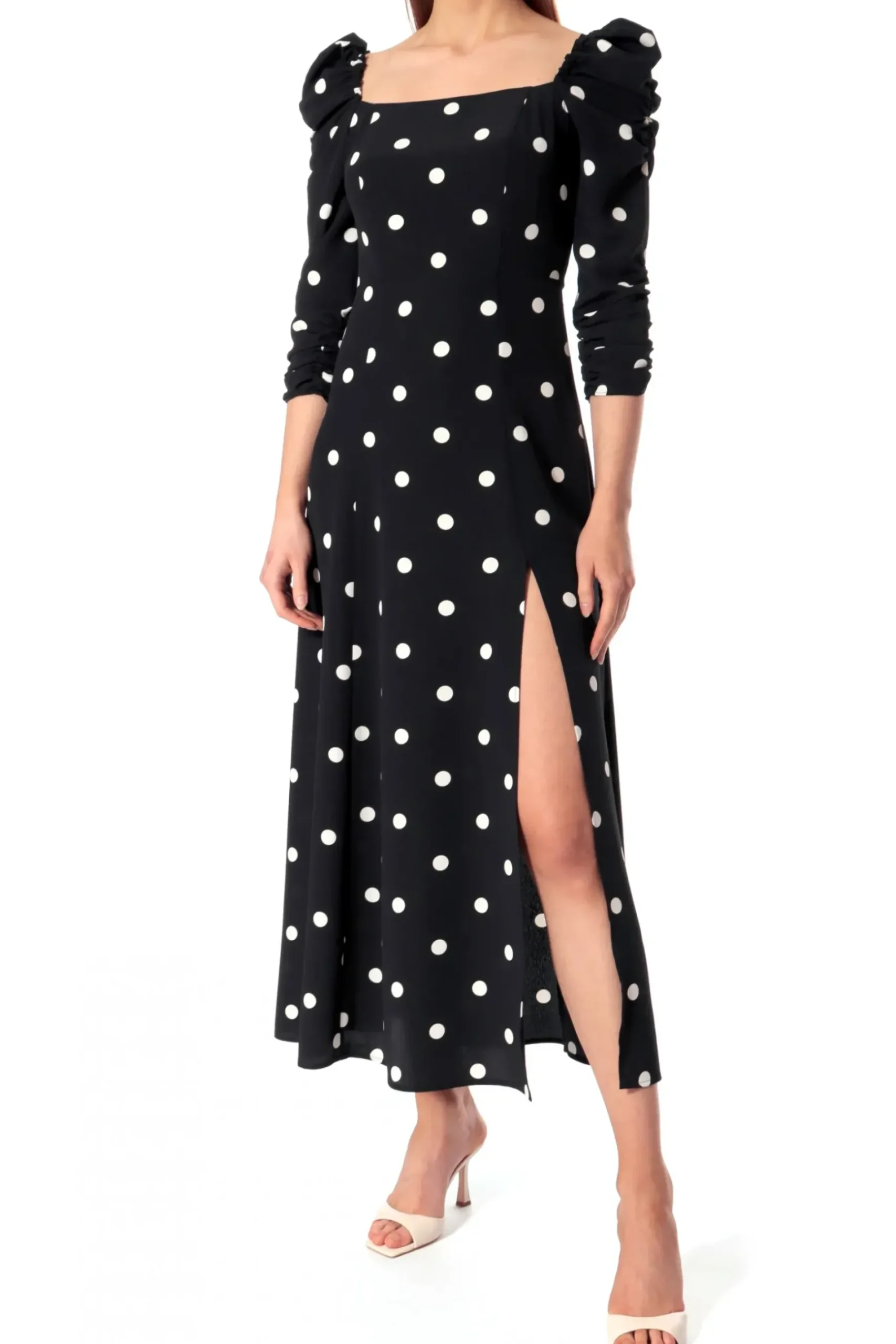 Sukienka Midi W Biale Grochy.