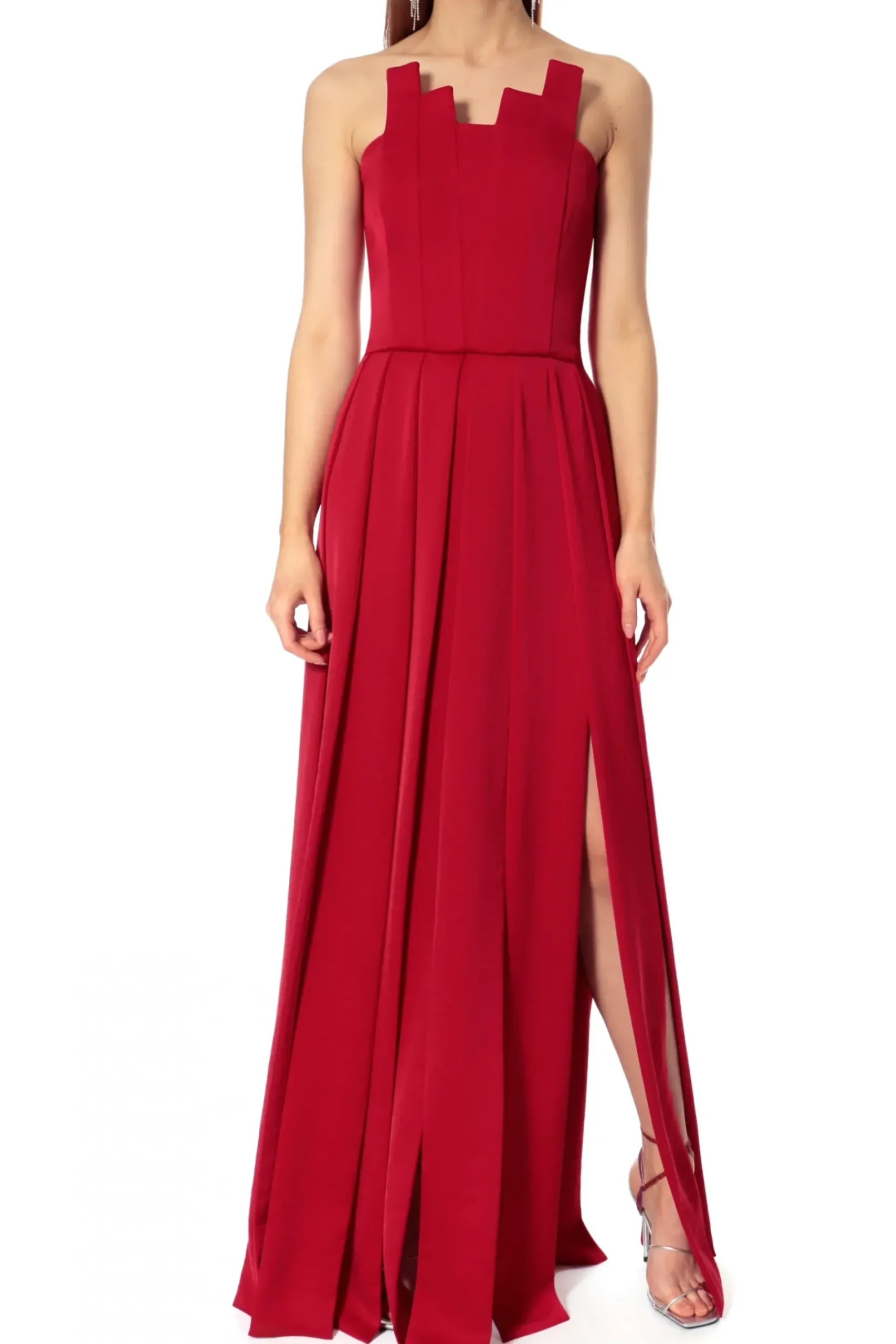 Wieczorowa Sukienka Maxi O Ciekawej Przyciagajacej Wzrok Formie. Gorset Wymodelowany Fiszbinami Perfekcyjnie Podkresla Talie. Dlugie, „Tanczace” Wraz Z Ruchem Ciala Pasy Odkrywaja Zmyslowo Nogi.