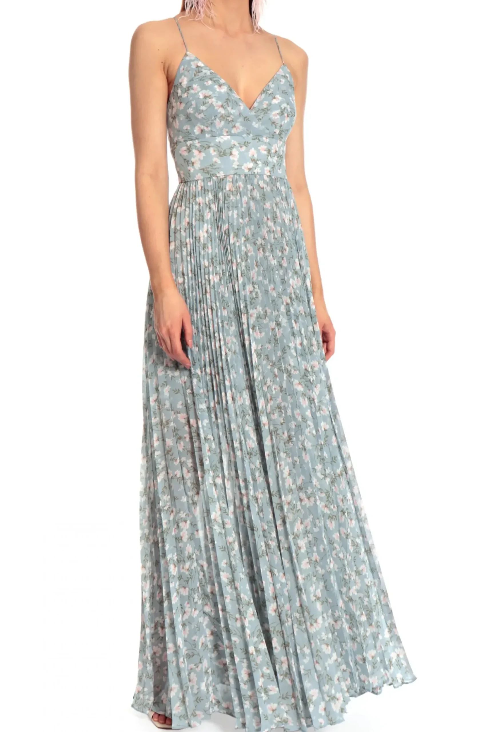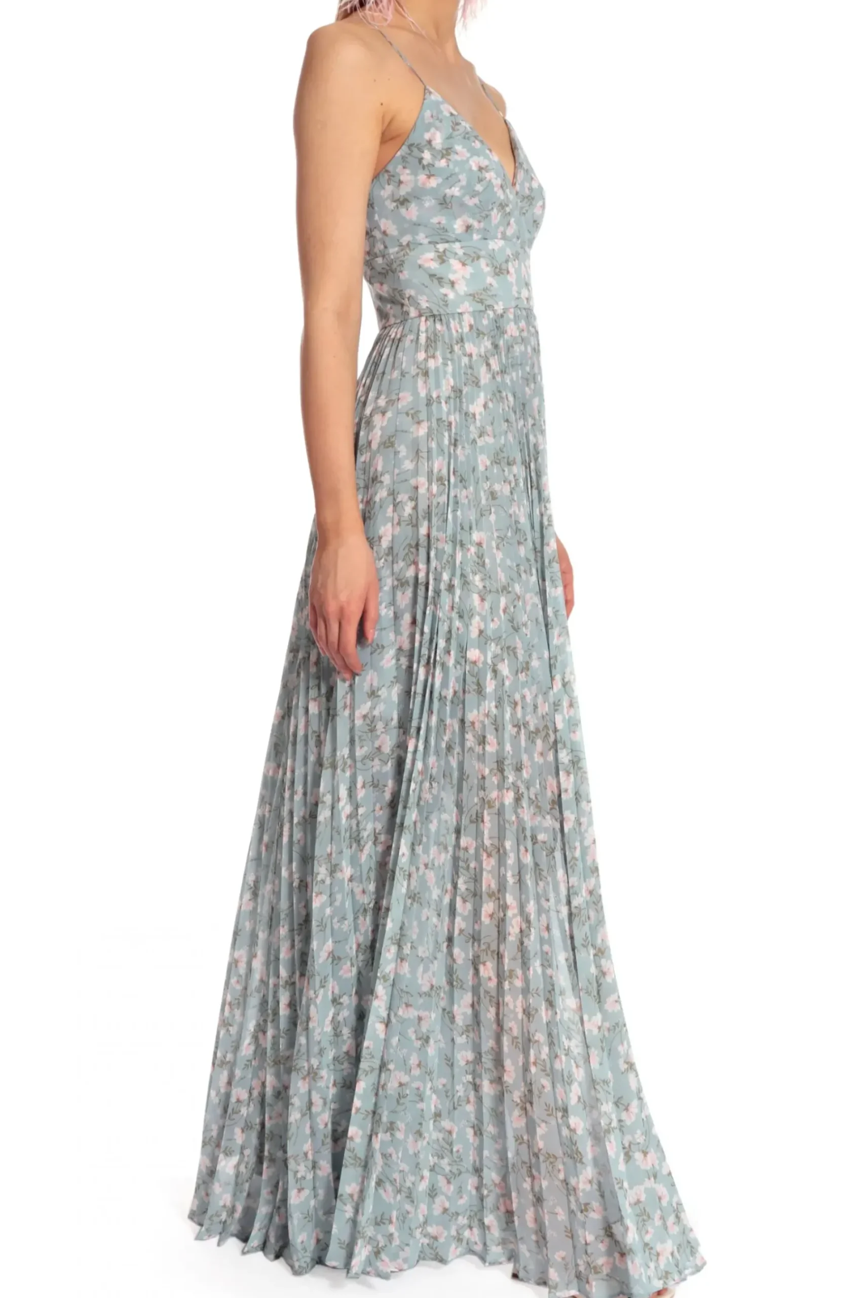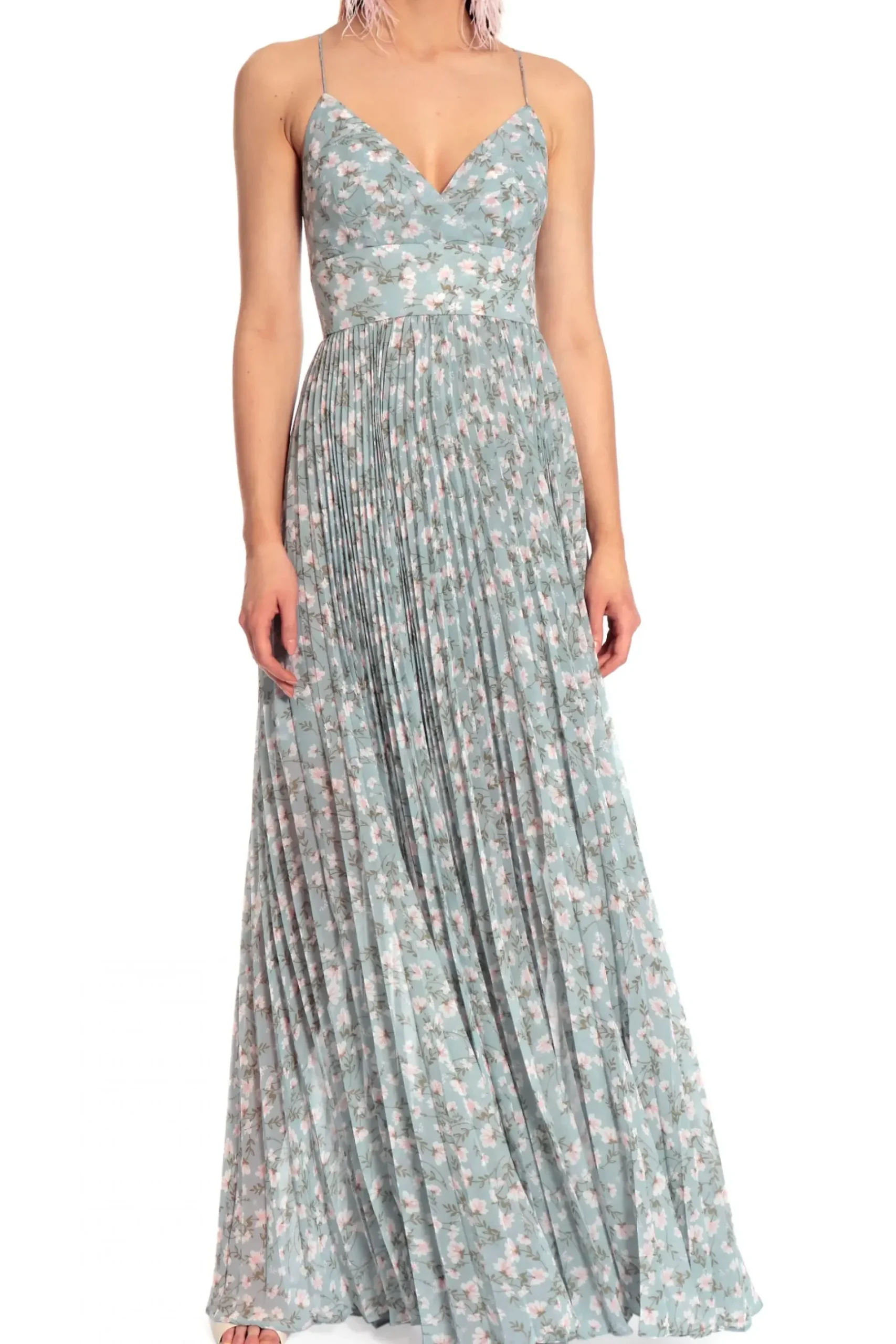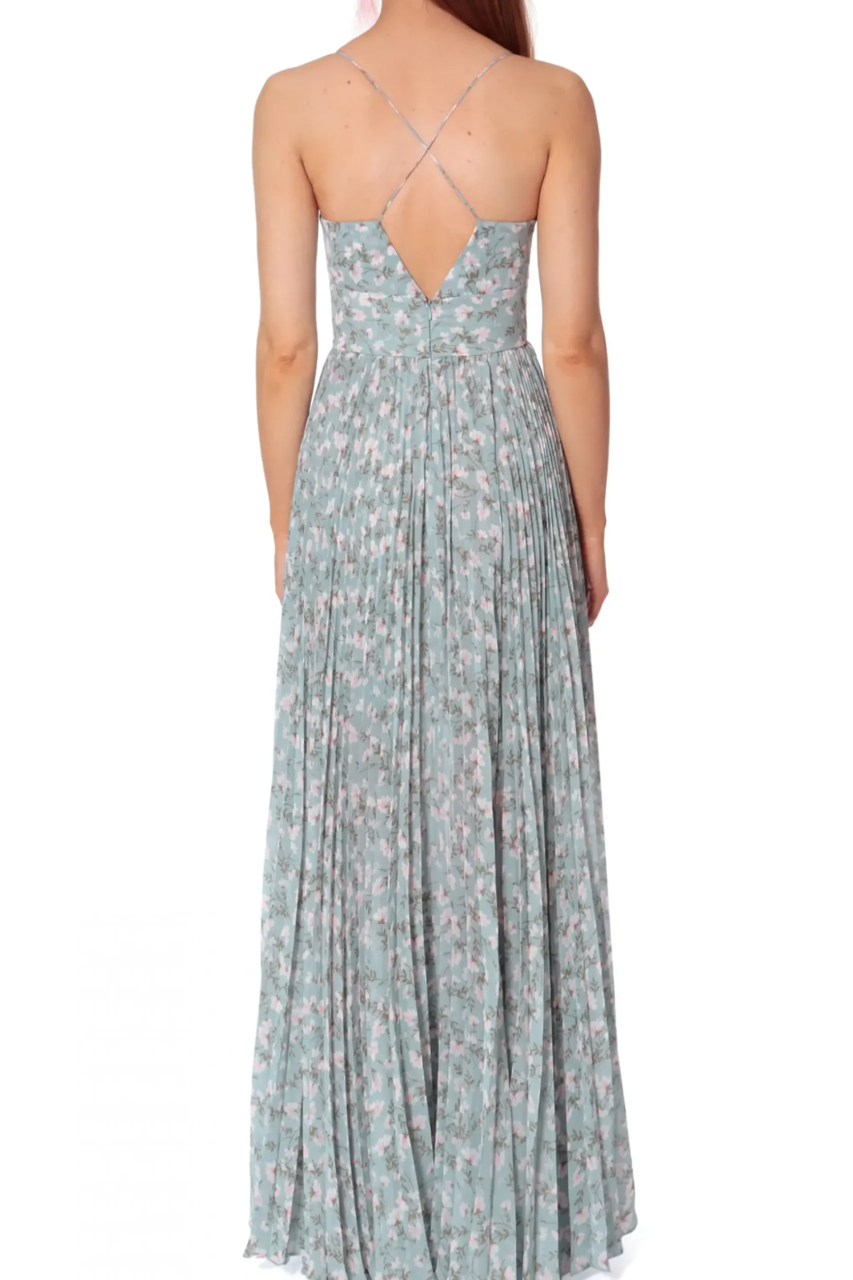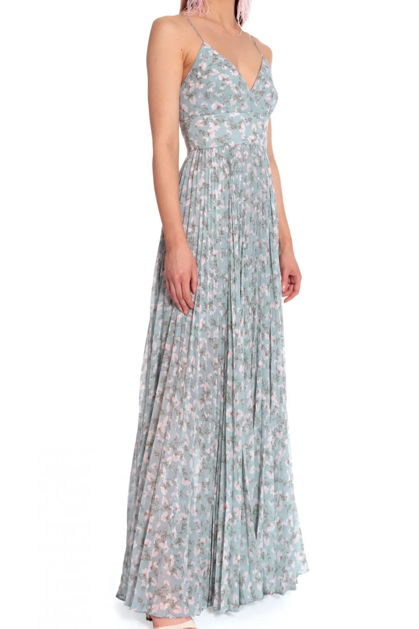 Zjawiskowa Sukienka Maxi Z Odkrytymi Plecami Uszyta Z Cienkiego Zwiewnego Szyfonu. Wysoka Talia Podkreslona Szerokim Pasem. Bogaty, Efektowny Plisowany Dol Sukni Z Pelnego Kola Plastycznie I Lekko Kolysze Sie Podczas Ruchu Nadajac Lekkosci Sylwetce. Tyl Sukni Gleboko Wykrojony W Ksztalt Podkreslajacy Smuklosc Plecow. Dekolt W Szpic Z Cieniutkimi Ramiaczkami Typu Makaroniki Krzyzujacymi Sie Zmyslowo Pomiedzy Lopatkami, Z Tylu Zapinana Na Kryty Zamek Blyskawiczny.