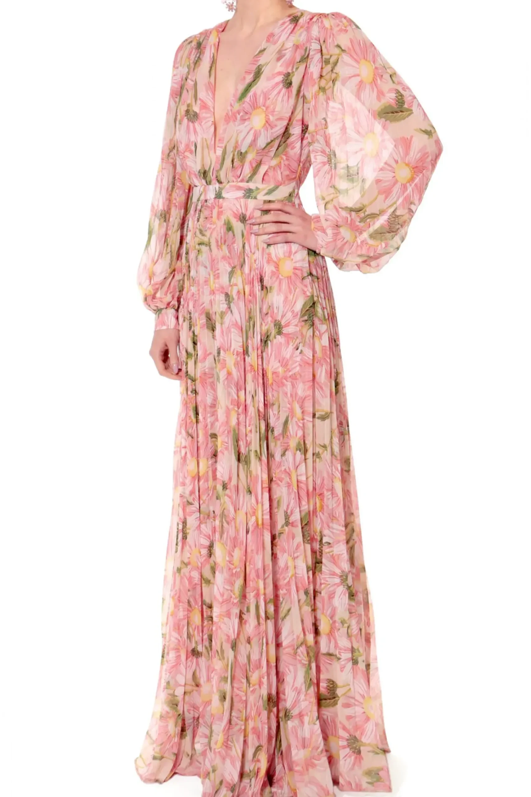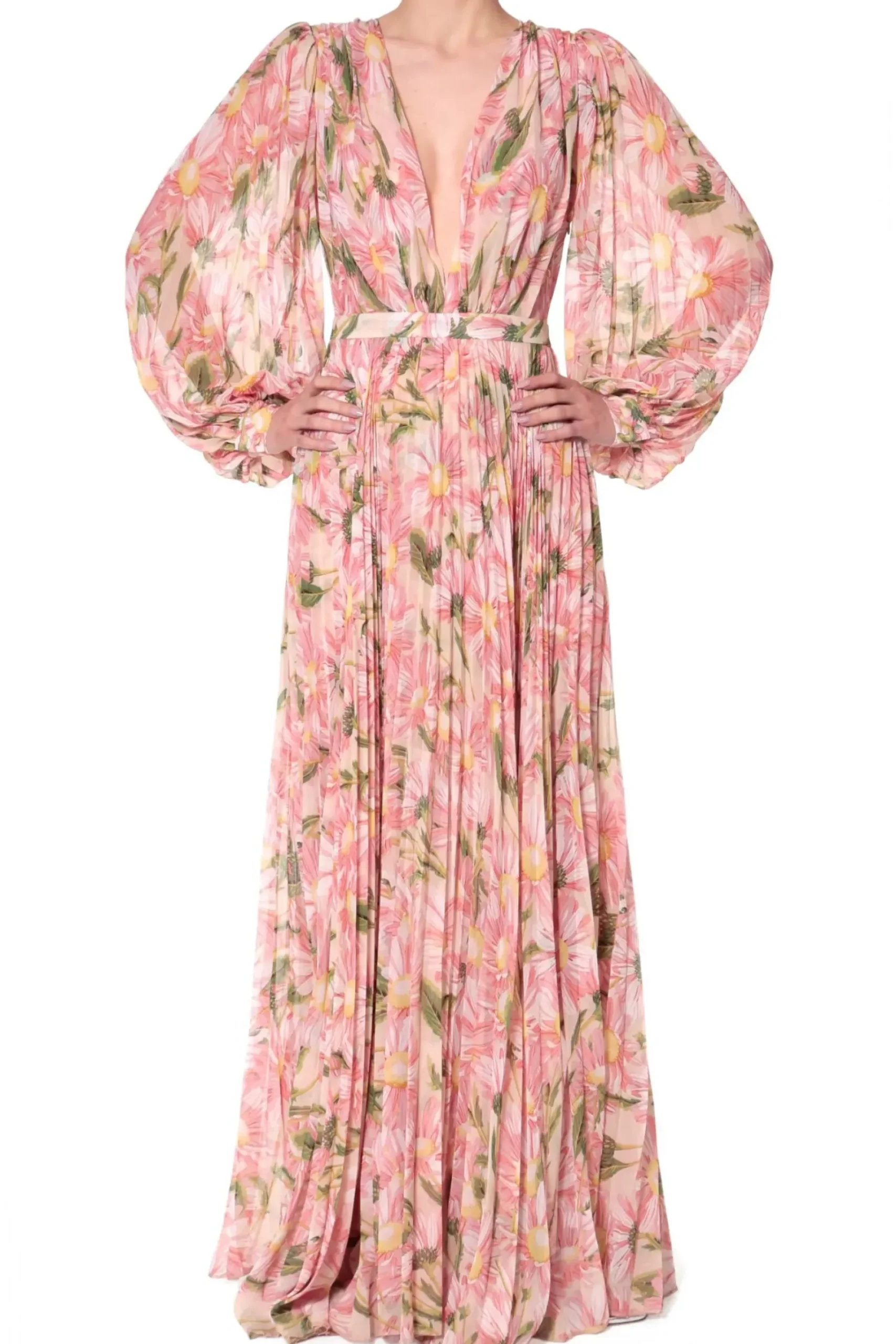 Plisowana Suknia Maxi Z Zamaszysta A Zarazem Lekka I Powiewna Czescia Spodnicowa, Miekko Kolyszaca Sie Podczas Ruchu. Gleboki, Zmyslowy Dekolt.