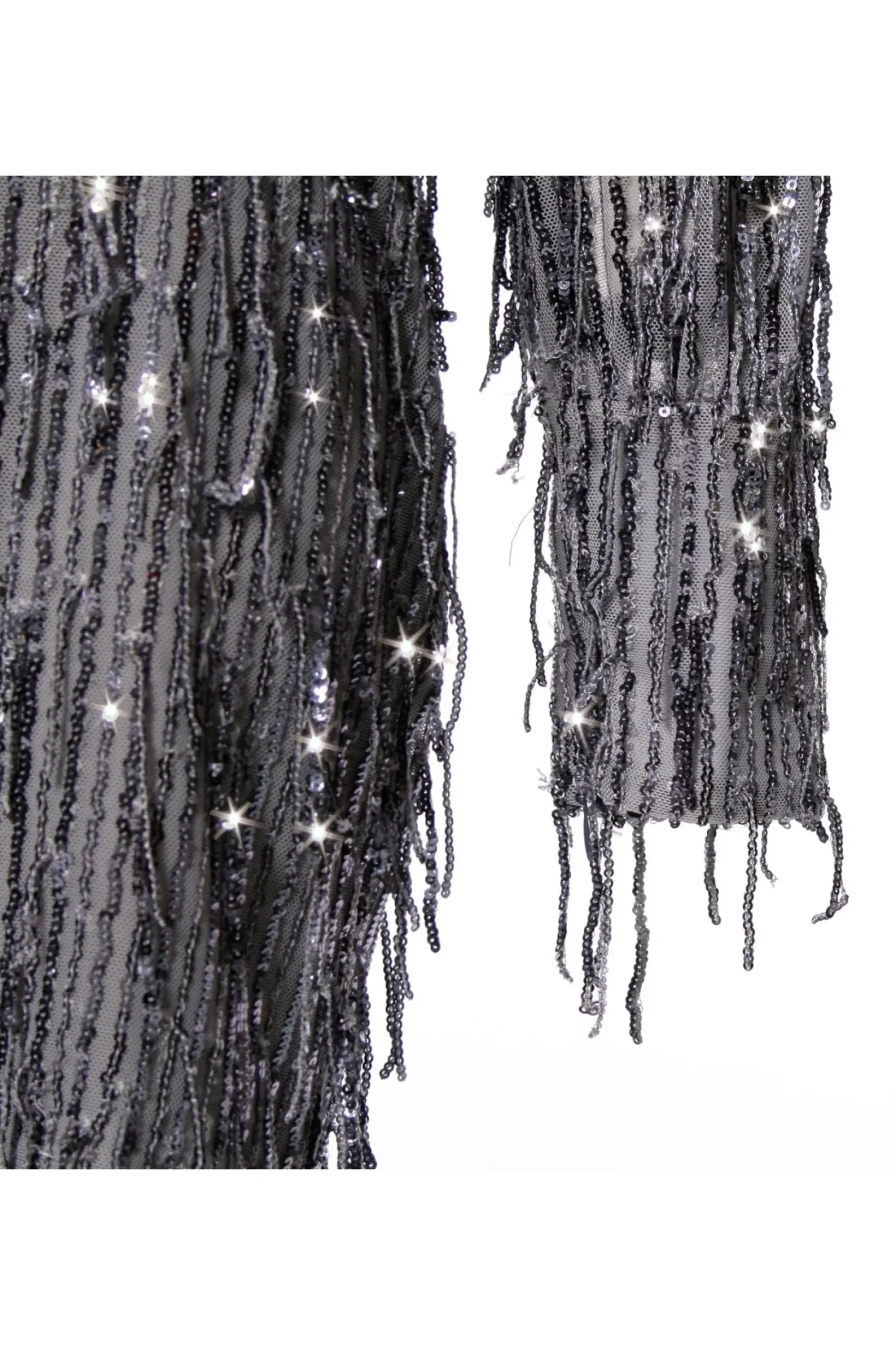 Niezwykle Efektowna, Wieczorowa Sukienka Mini Uszyta Z Przyciagajacego Wzrok Materialu Z Cekinowymi Fredzlami Na Delikatnej Siateczce. Gleboki Kopertowy Dekolt Wraz Z Podkreslona Talia Uwydatniaja Kobiece Atrybuty. Dlugie Rekawy Zakonczone Sa Wyraznymi Mankietami. Sukienka Zapinana Jest Na Plecach Na Zamek. Czesciowo Na Podszewce.