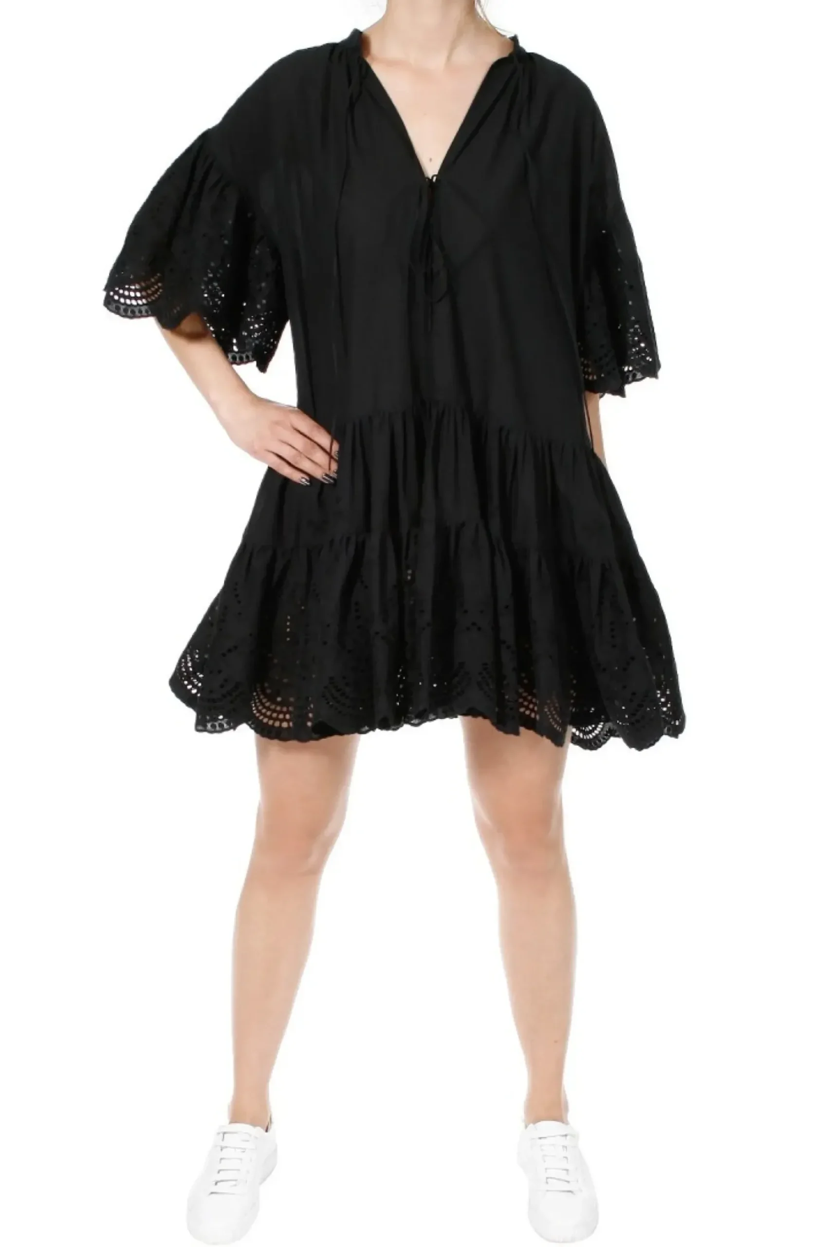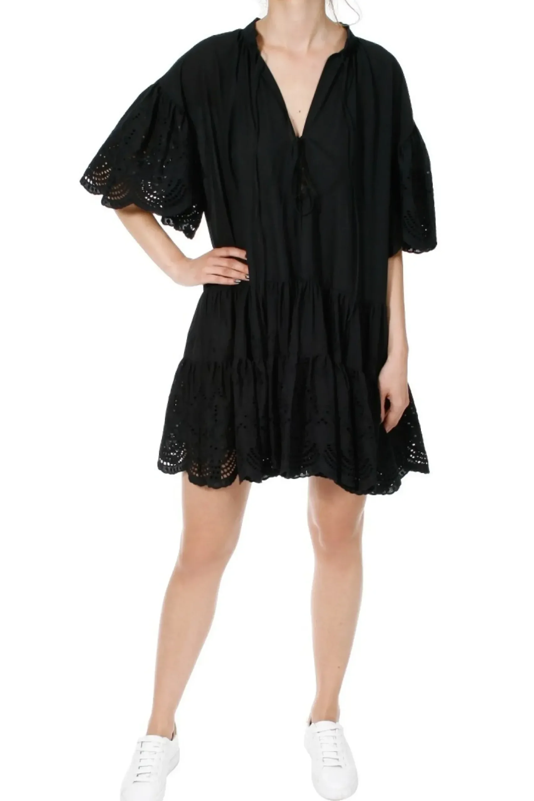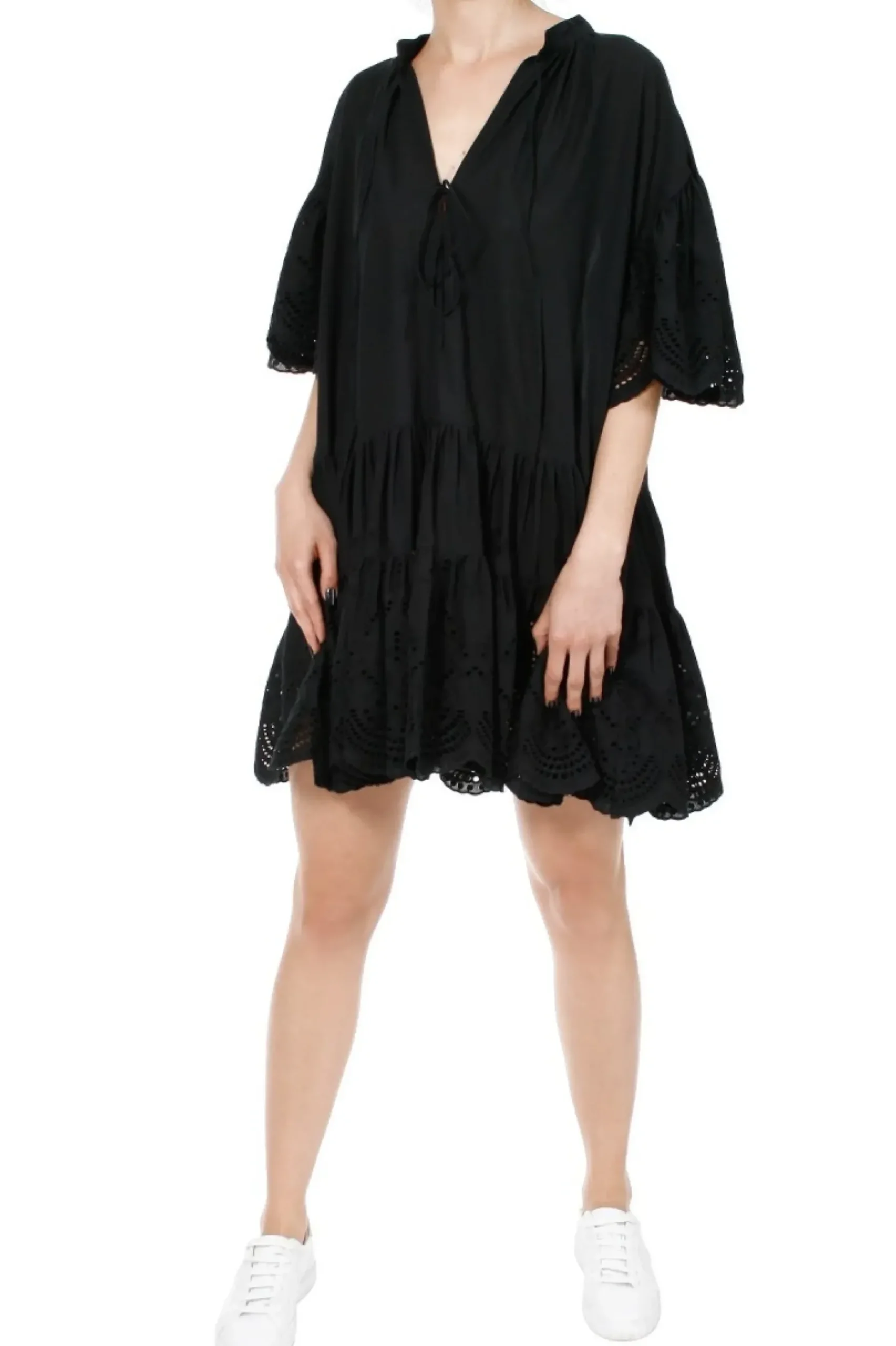 Sukienka Boho Z Lekkiego Bawelnianego Woalu. Misternie Haftowane Rekawy Oraz Dol Sukienki Haftem Richelieu. Z Przodu Glebokie Pekniecie Wiazane Na Dwoch Poziomach Na Troczki, Pozwalajace Ma Regulacje Glebokosci Dekoltu. Bogate Rekawy Siegajace Lokcia O Linii Skrzydel Motyla. Tyl Sukienki Nieco Dluzszy Od Przodu. Sukienki W Stylu Boho Swietnie Komponuja Sie Z Kowbojkami, Sandalami I Trampkami.