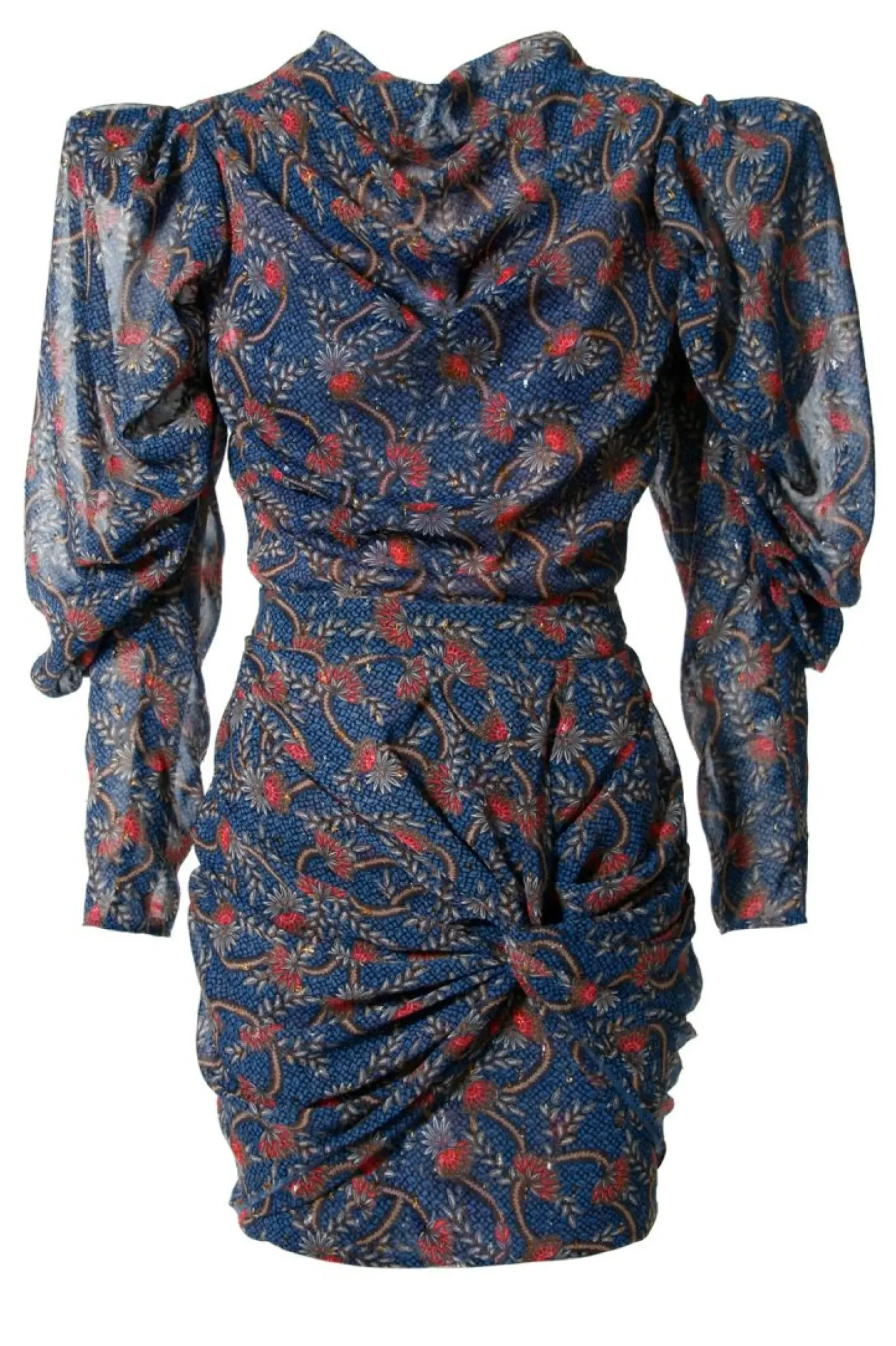 Sukienka Mini Z Szyfonu W Drobny Desen Kwiatowy.